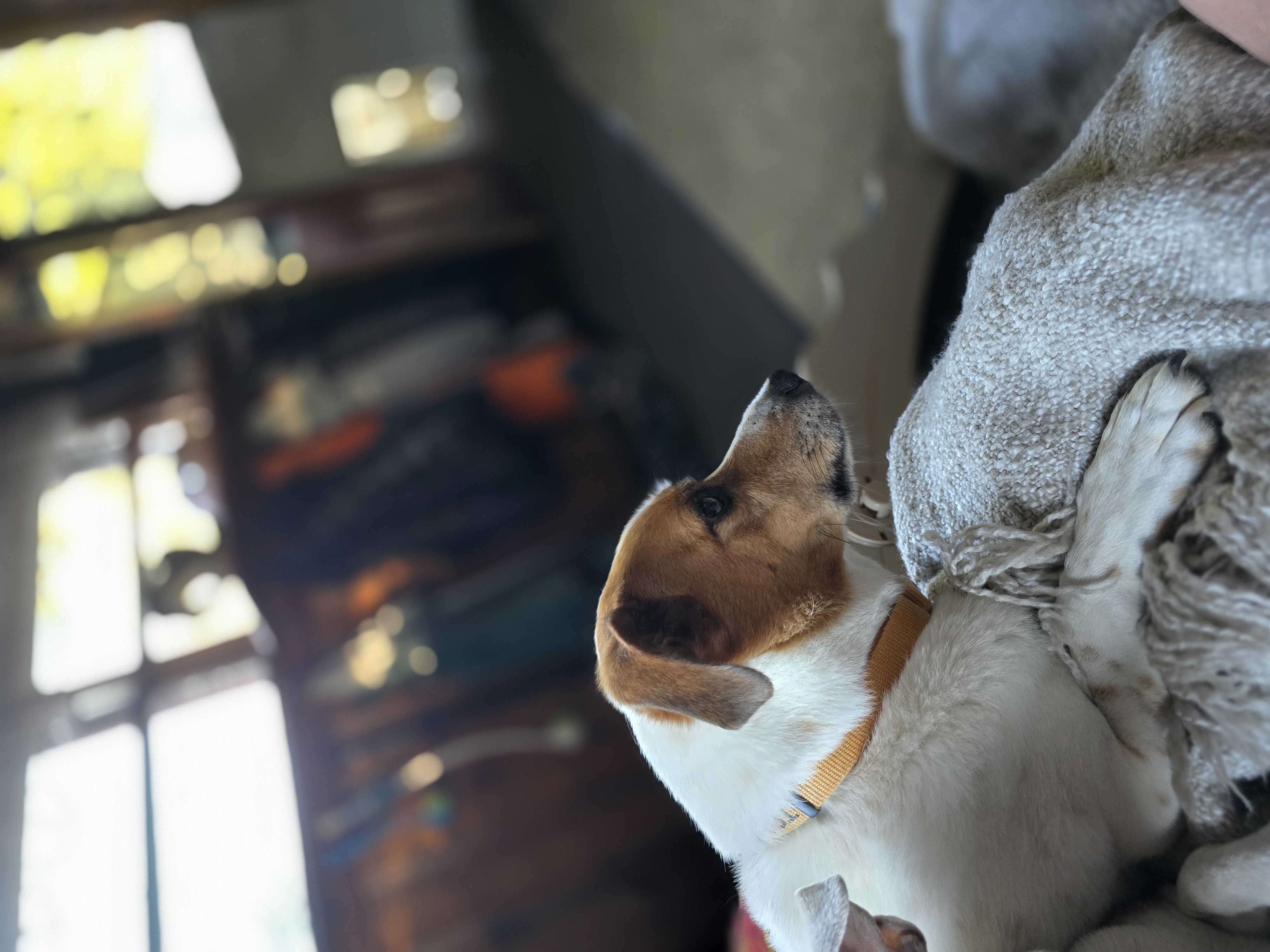 April 15, 2016 - Present YOU CAN CLICK ON ANY IMAGE FOR A MUCH BETTER PICTURE! April 14, 2016 Here's a shot when Debby, who was fostering Toodledip, brought him over for an introduction. He climbed into my lap. April 15, 2016 Toodledip came home on April 15, 2016. He came from The Rescue Inn, Inc. pet rescue in North Olmsted. He was being fostered by Debby. Here is a link to his original Adopt-a-Pet listing. Here is his original Facebook post. The most loving, happy, playfull, polite dog I had seen in my search for the next member of our household. While not trained, he is well behaved. While bat poop crazy full of energy, he directs it properly. We had a wonderful first day. He ran and jumped and played and played and played. He is about a year old and looks like a Jack Russell Terrier. He is definitely a hunter. When walked around the acreage to the east he found something we walked past every day: a skeleton of a deer that got caught under a fence and died. I am not going to post the picture here but here is a link.