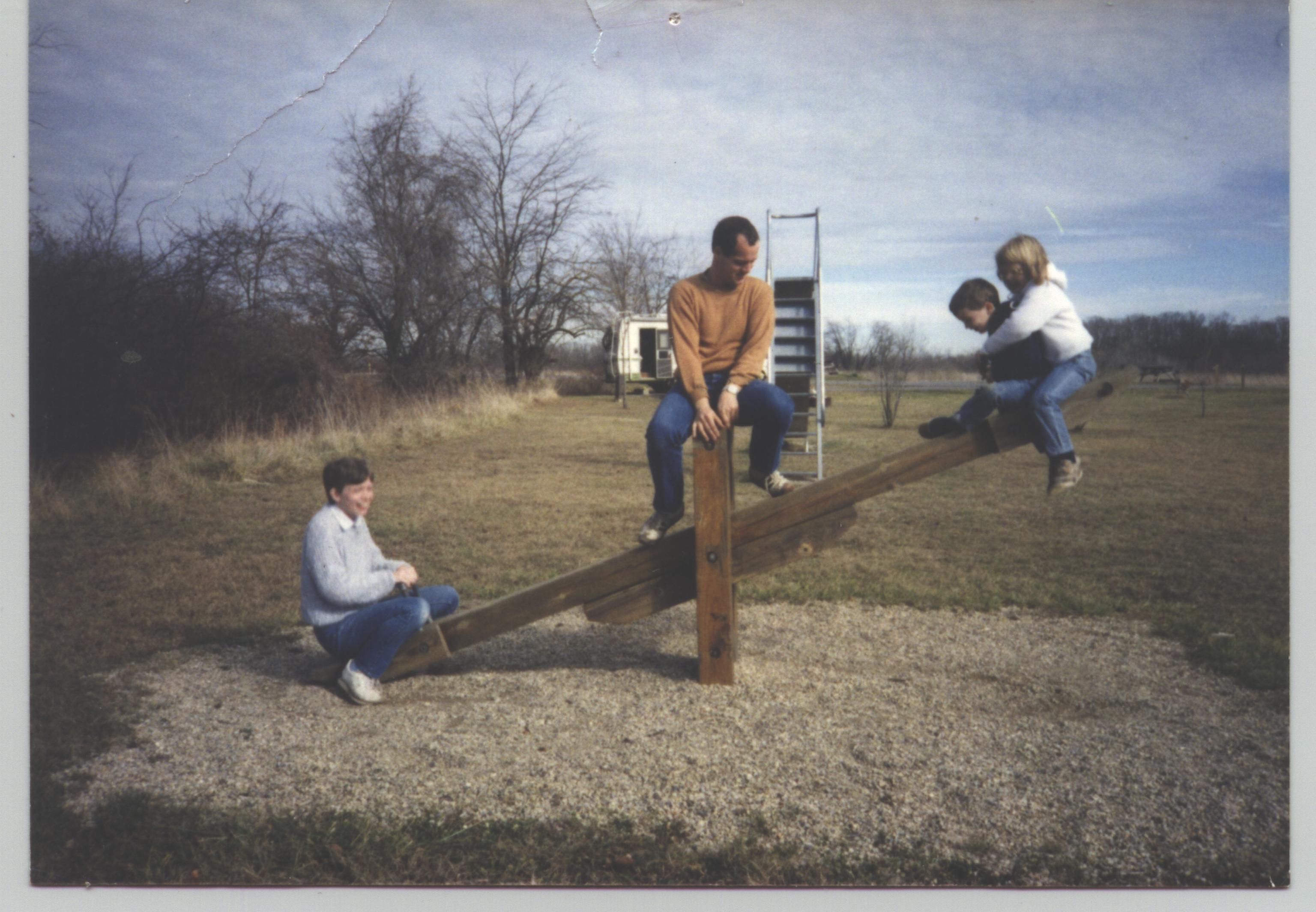 A long ride but it sure is nice.  Only camp "B" is open.  We are on site 90 backing up to a playground.  Each camp had a playground.  Meg and Matt made friends with two other kids.  They played on the playground, we took a bide ride to the (closed) camp A.  Lots of fun.  mary and I pretty much sat around inside.  The rain stared about 5 PM.  Meg's friend ate lunch here and now (5:35 PM) they are at their friend's eating dinner.  Such a deal!  Bed at about 9 PM but Matt and Mom didn't go to sleep until 11 PM.  Matt was up at 6 AM.  We got up at 8 AM.  Took bike rides, played at the playground, took walks, and had a wonderful time.  We played until 1630.  Left and had a nice trip home.  Had a baby marsupial (about two inches long) of some kind under the motorhome.  Cruised the marina and picnic areas.  A great trip!