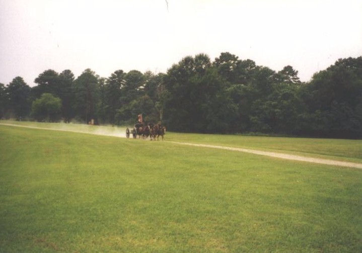 gallop, comes six horses pulling a cannon. Nine men are all