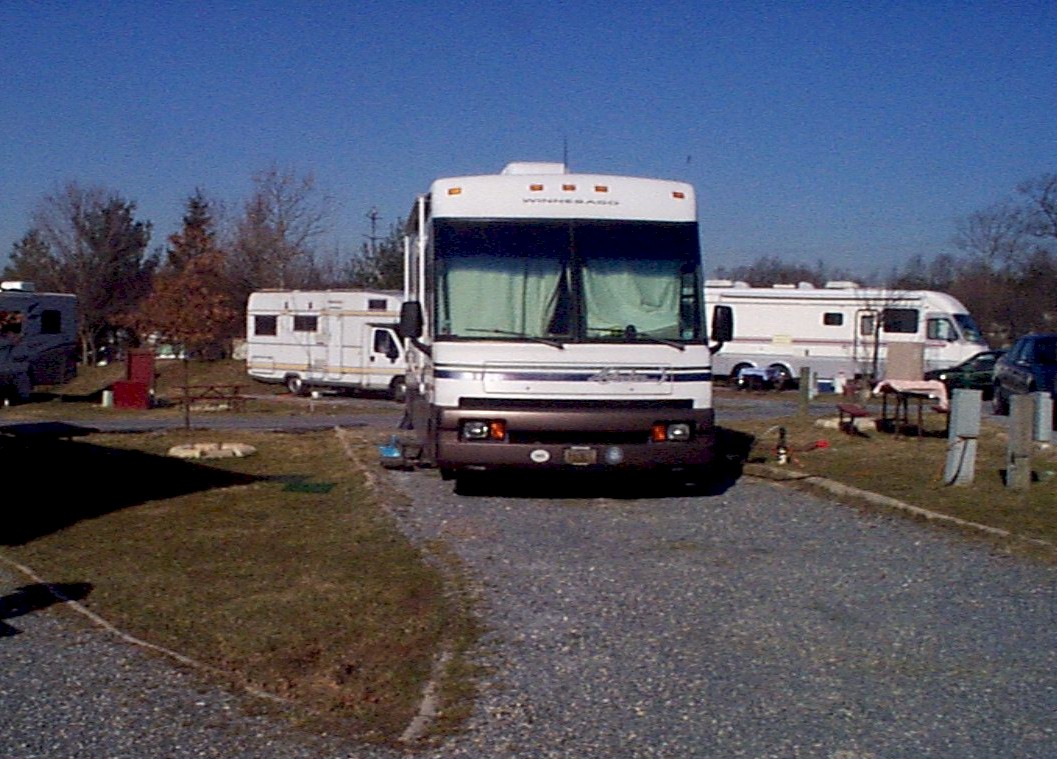 Click for a larger image.Click for a larger image.I enjoyed the park.  The people running it were pleasant.  Paved roads lead to graveled sites.  There is an ample water pressure and electrical capacity.  They have a great store.  The perimeter road measures about 1.2 miles so walking the dog isn’t a problem.  We visit D.C. well off-season.  November and March trips lead to FAR less crowds.  We drove into D.C. on a prior visit and drove on our initial day.  The rest of the time we took the bus from the bus stop inside the park to the Metro rail line.  The cost was less than paying for parking.  It ran $5.00 for an all day rail pass (so you can move between areas) and $1.35 for two bus trips.  The office has excellent information on how to get to and from downtown.  Note that we were here off-season.  I bet the story is different when the park is at capacity.