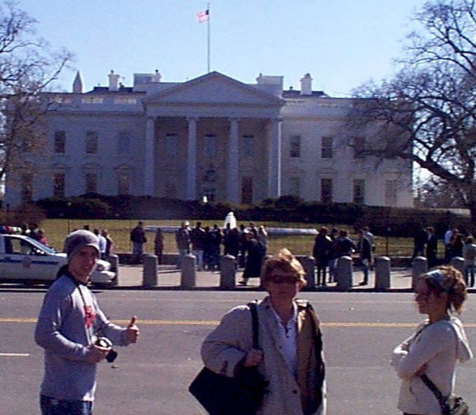 Click for a larger image.Click for a larger image.The City itself is quite different than it was a few years ago.  One fault of public administration is that it grows.  If given an inch, it will take a mile.  This particular administration is trying to persuade the world that a preemptive strike against the country of Iraq will keep the world safe, provide more oil, and lessen our own unemployment by killing off a bunch of our own troops.  This course and the 9-11 disaster have resulted in paranoia unmatched in recent times.  That paranoia has led to an expansion of internal security that would amaze Johnson and leave Roosevelt standing in awe.  If temporary gates aren’t encasing a building, chain link and barbed wire does the job.  Searches go from the trivial bag check to bizarre bomb sniffing machines.  The Capital won’t let you bring in bottled water.  Click for a larger image.Click for a larger image.You must remove your coats, hats, and bags.  Heaven help you if you have a medium-sized belt buckle.  Given the nuts the city attracts, the hundreds of homeless wandering around begging, the paranoia, and the impossible job of protecting everyone from every evil, it appears the city is operating efficiently as possible.  On our first day in the City, 800 additional police were brought in for a planned demonstration that attracted 100 participants.  On returning to our car we found it a stone’s throw inside a blocked off street.  There was an emergency.  Click for a larger image.We could not get to our car.  On Sunday, the city is pretty well shut down.  At about six, with the sun setting, we were getting quite cold.  We wandered around their incident area and as close to our car as we could.  We sat ourselves on the curb.  The D.C. police suggested going somewhere else but couldn’t provide suggestions.  A Lt. Herold came by and rescued our car from the clutches of the emergency and we were able to leave.  Thank you Lt. Herold.  On another day a 3:30 p.m. tour of the Capital Building resulted in a 40-minute security check of the participants.  The tour was about one-third of the way done when the police closed the building at the appointed 4:30 p.m. closing time.  The Lincoln Memorial was gated off, you could only get to the statue of Lincoln.  We were able to see the White House from the gate a half a mile or so away.