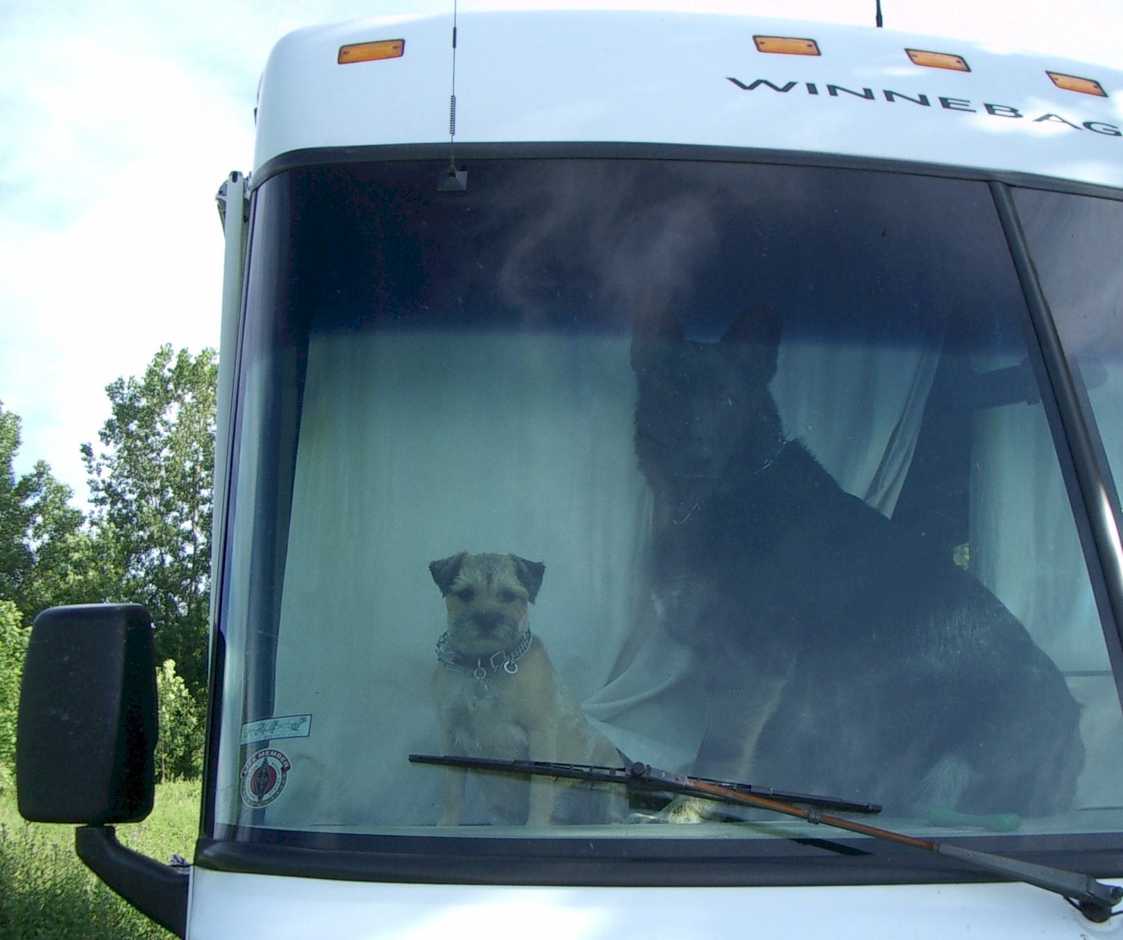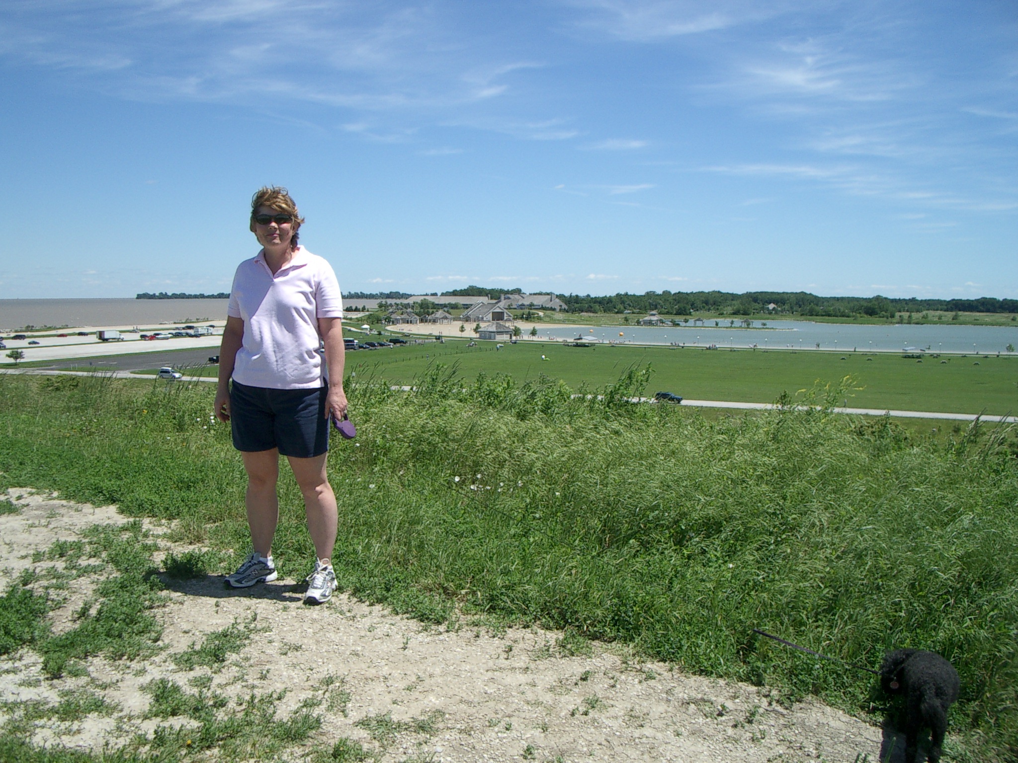 ride and a walk with the dogs. Fritz decided to sniff the lake.