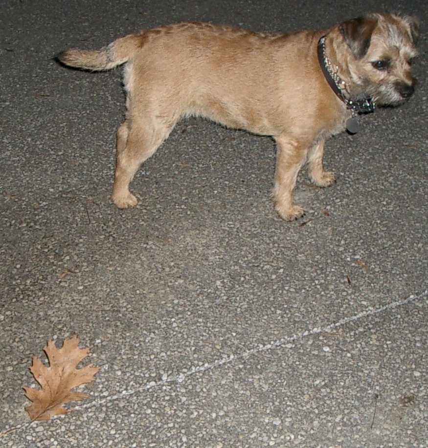 The leaf is vertical and represented a monster from afar.  It was soon conquored by the fearless Gracie.  Click for a larger image.A trip scheduled for October had to be cancelled due to Mom's health problems.  We have far too much time between our trips!
