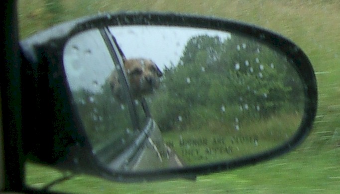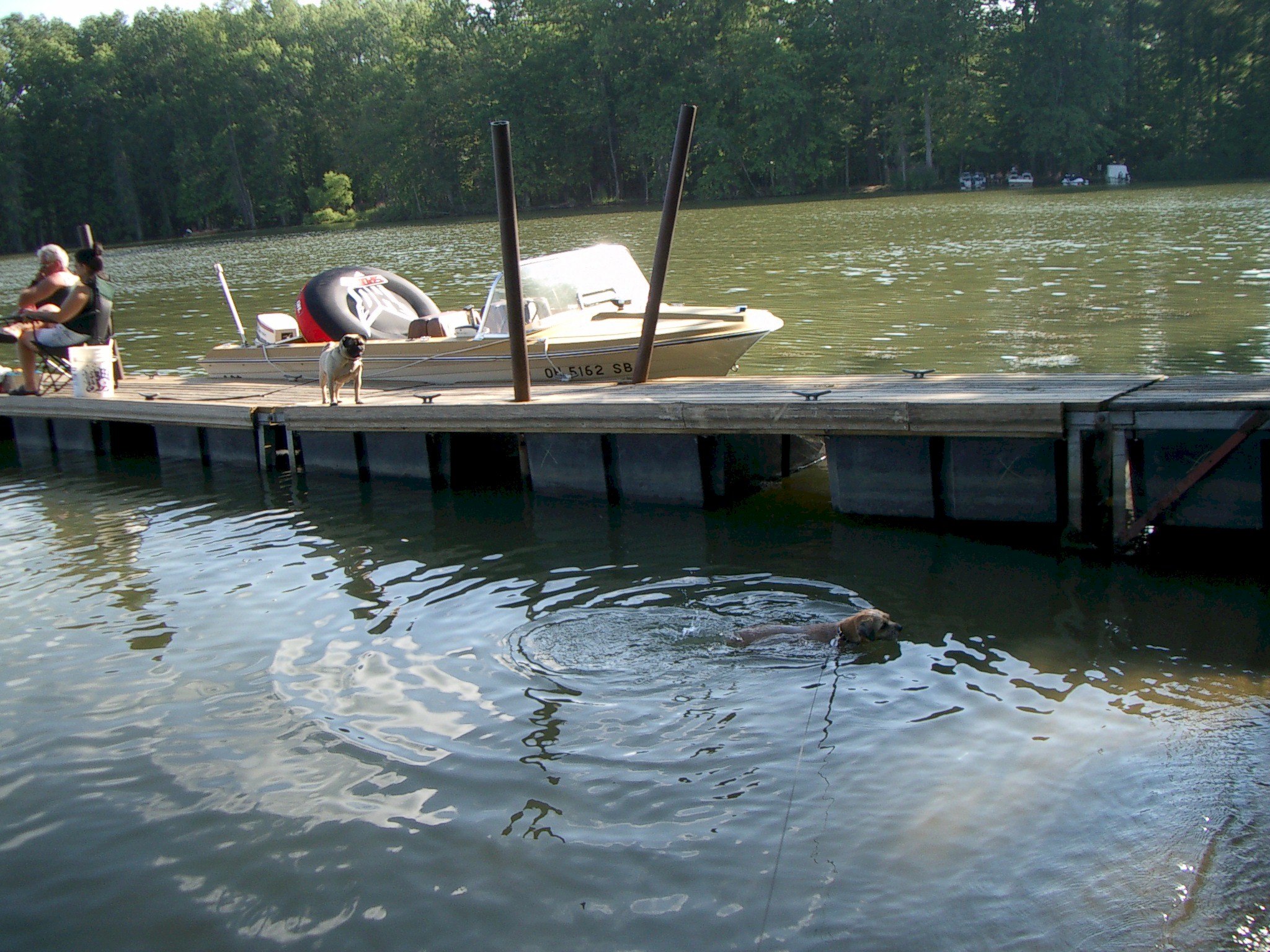 Persiphony, Gracie, Megan and I went on a walk around the beaver trail.  There were too many kids having  been on the trail to allow us to see anything of interest.  Or at least we thought.  We saw a neat black snake.  I tried snapping a picture but only got two inches of its tail.  We ended our walk by the boat dock where the dogs took a swim to cool off.  Three half-pound hamburgers and a box of Velveeta Mac-n-Cheese demanded another walk.  We critiqued sites for the list of good sites for this park.  Eleanor and Gracie decided to play for a time and there was a flurry of activity.  We ended the day with more walks, a car ride,  and we watched the movie The Maltese Falcon.