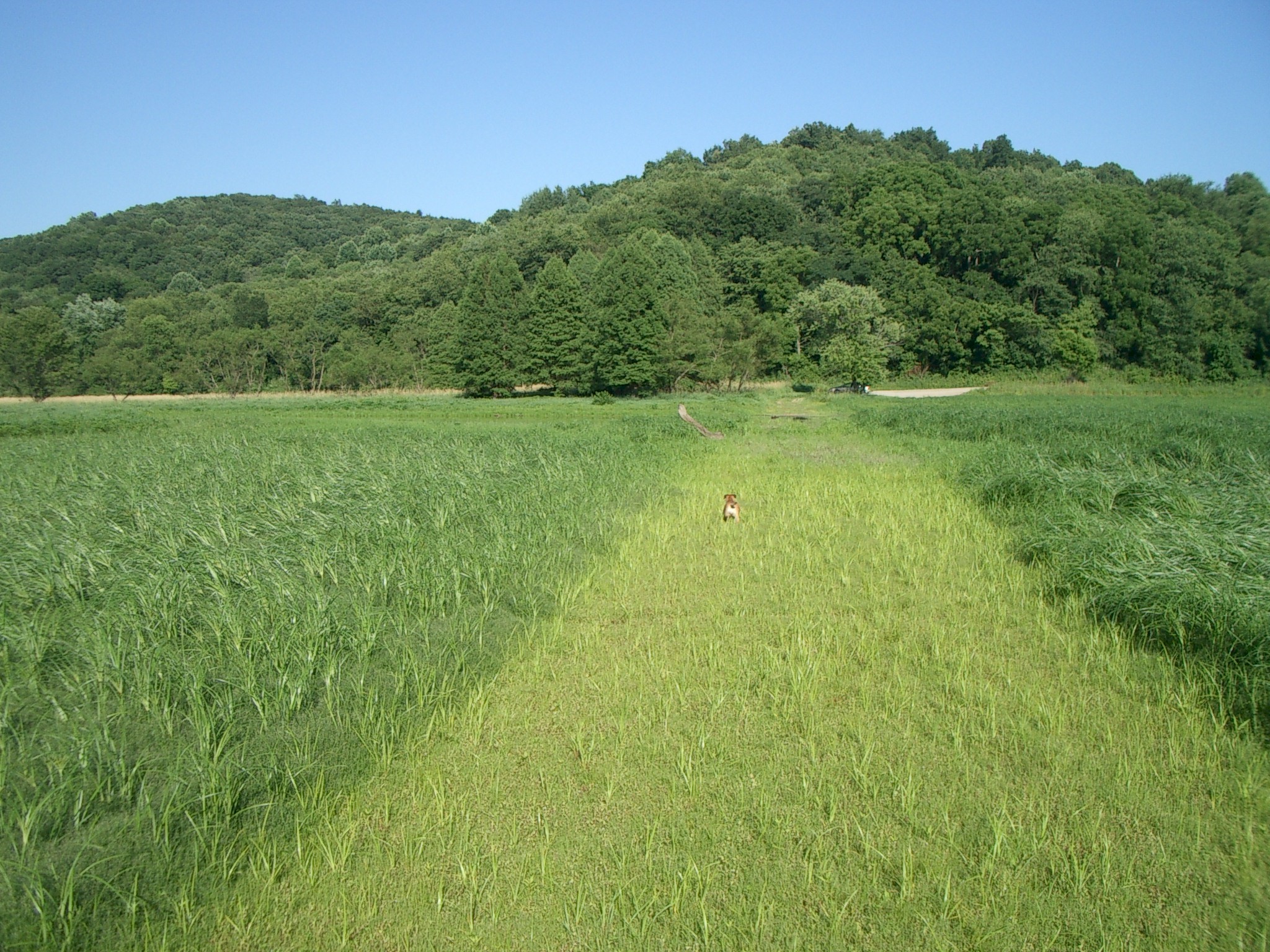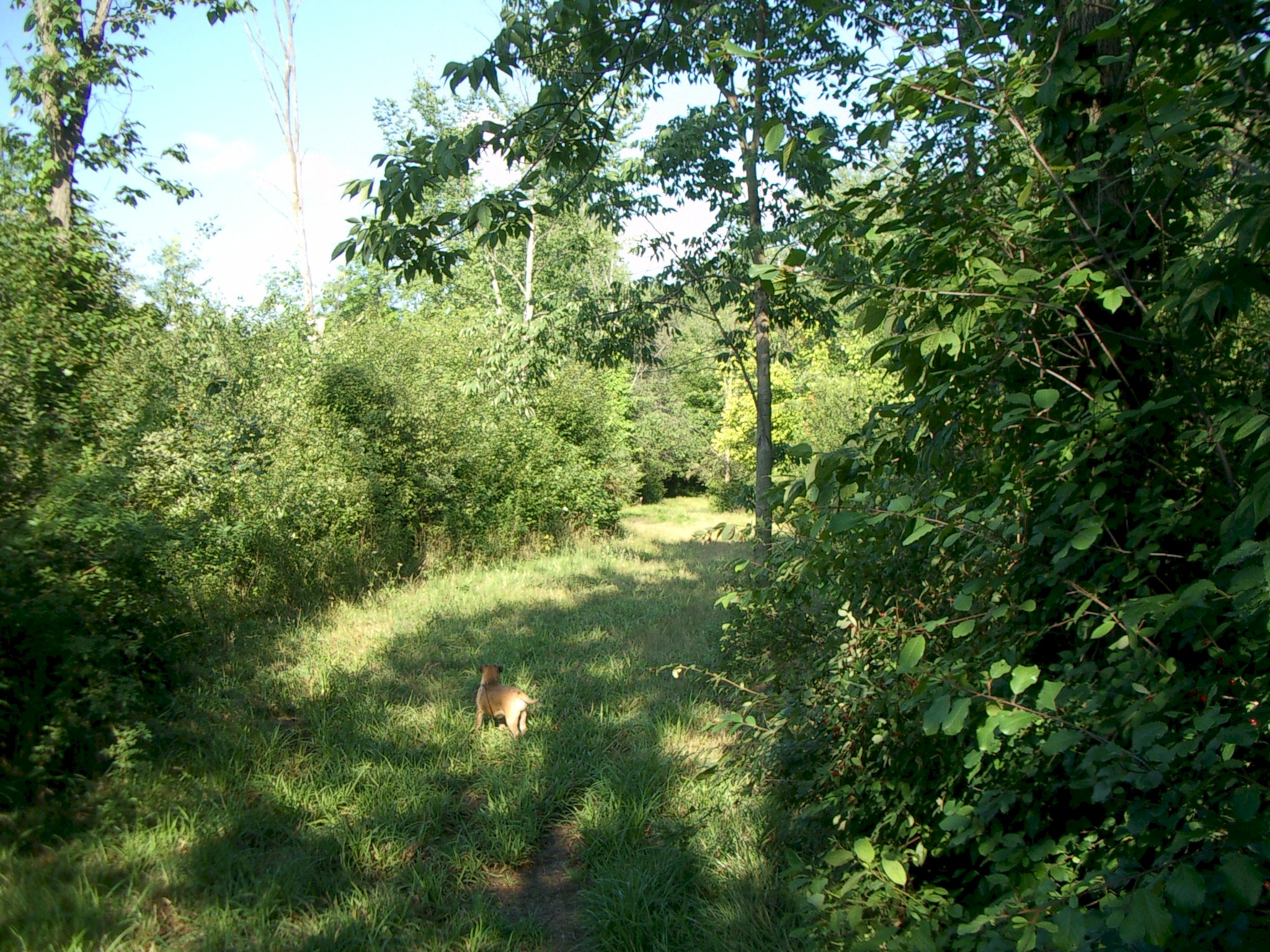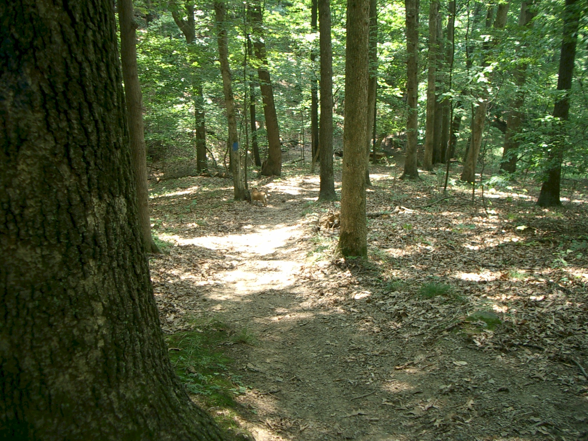 Click for a larger image.Last night was a loafer!  I watched movies until 3:00 a.m.  We got up before the temperatures got into the upper 80s and before the first of the thunderstorms hit.  We had a nice walk.  By camping in area F, you can walk both F and G for a total of xx miles.  Gracie is being clicker trained not to bark at other dogs.  I'm not sure how well it will go but it shows a glimmer of promise after our first walk.Click for a larger image