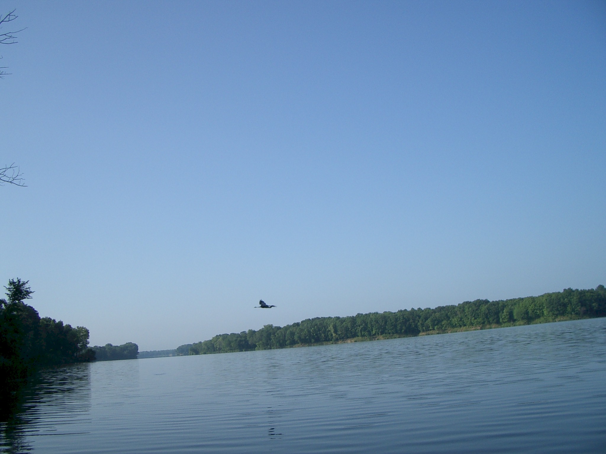 We explored coves and crossed the reservoir. We saw a King Fisher