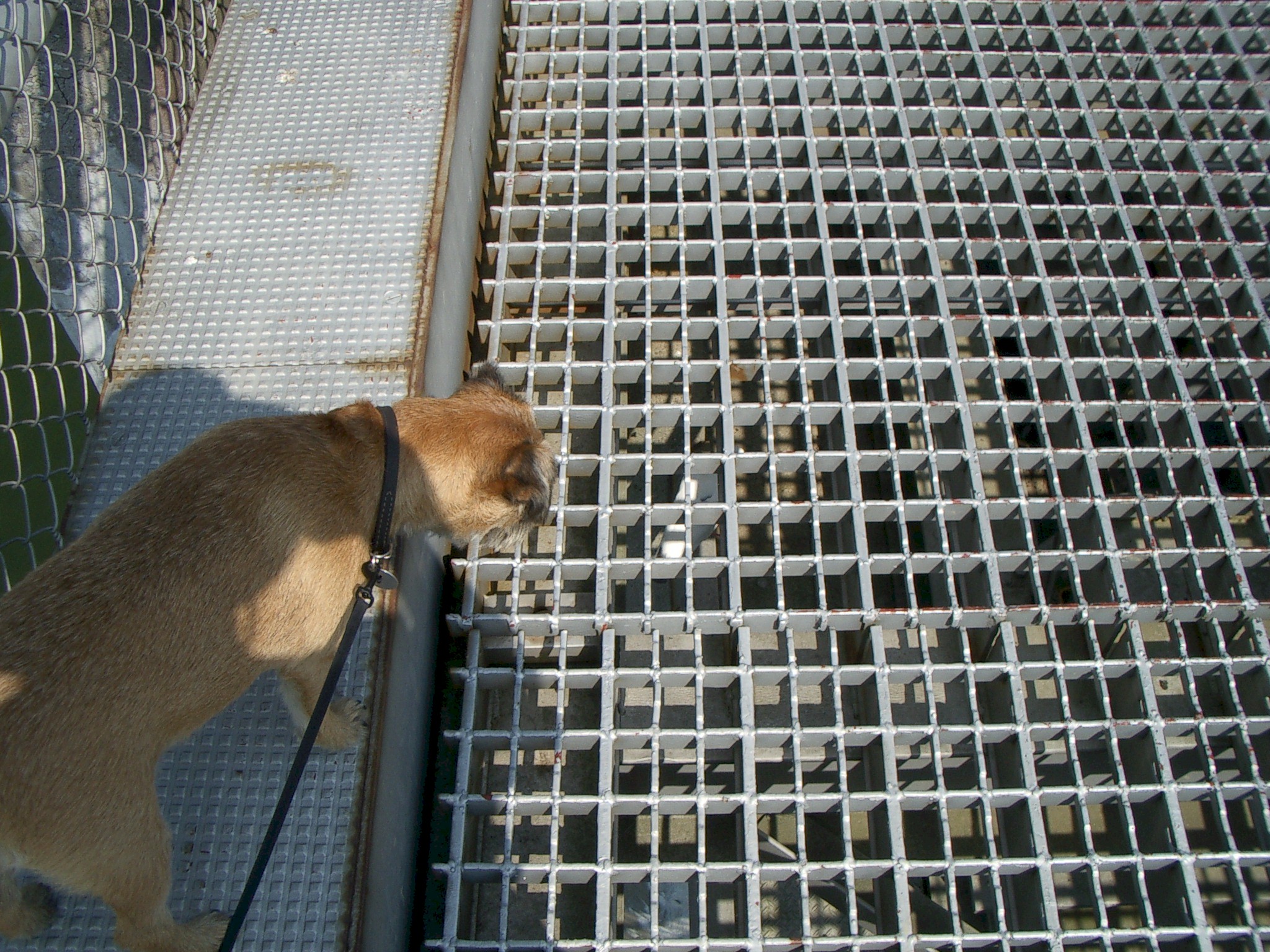 dam doors is odd as you walk on a metal grid. Gracie used a small