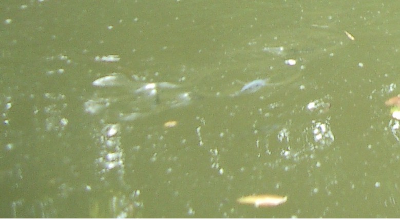 fishing, almost canoed up to a heron and saw many fish jumping around
