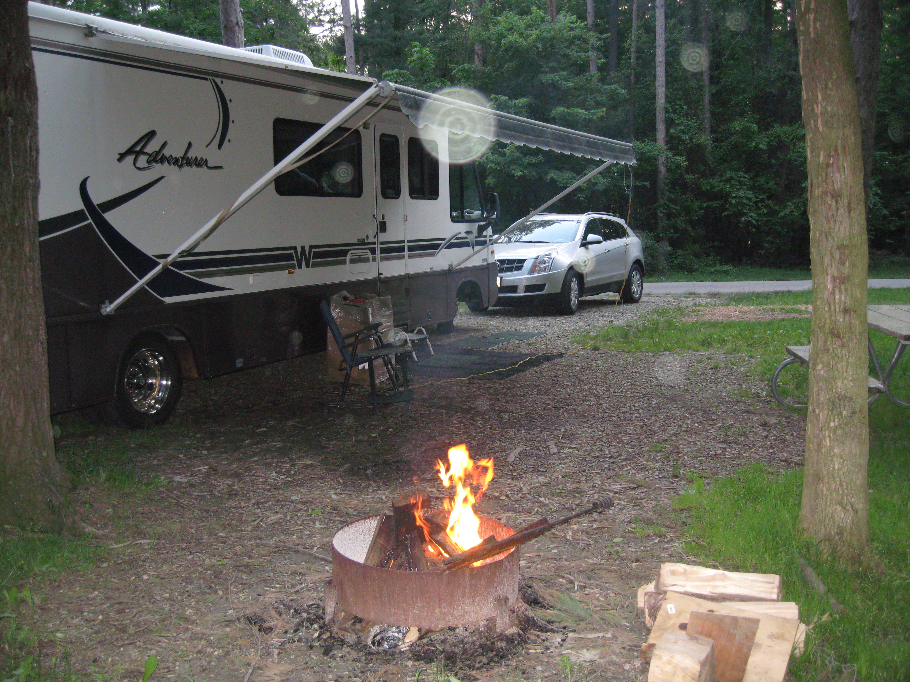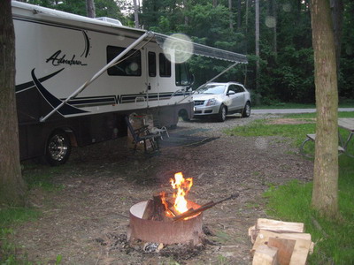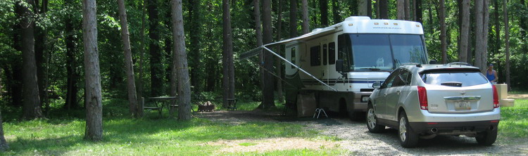 But now I have a couple of days almost free and, darn it, I'm going camping.  So I roll up to site 228.  The dogs and I are here!  And the phone rings.  Going back to Cleveland for an arraignment tomorrow, Tuesday.  Going to Stow on Wednesday.  Need to set a meeting on Tuesday.  Choosing Findley was proper for the work.  I'll be driving back and forth a number of times.