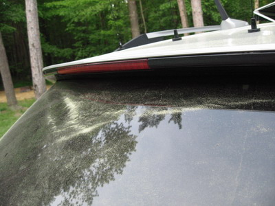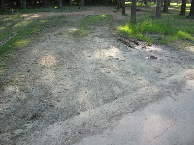 Wednesday dawned much cooler.  Our campground walk was much more enjoyable. There is green everywhere.  The pine trees are dropping pollen covering everything with a greenish-yellow haze.  When the wind blows, it looks like a greenish-yellow fog.  Neat.  Look above at the road.  It is actually tinted greenish-yellow.  To the left is a green campsite!