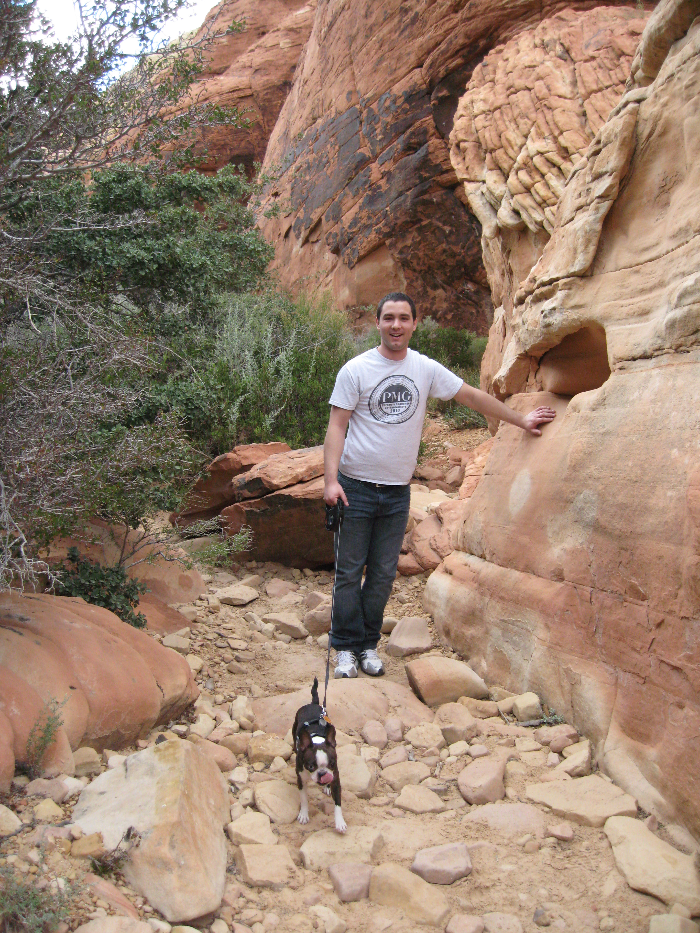 We went out and found the Fukuburger truck. This is a truck that wanders the area selling popular though decadent hamburgers. It was a top shelf meal eaten sitting on the back bumper of our rental car. We then returned to the strip and took a walk through another four or five casinos. We took a drive downtown and looked at the old Vegas casinos. Pretty cool. My favorite casino is the Bellagio. The Venetian is next. Bills is interesting just because it appeared to have a suburban, homey kind of clientele who had no interest in impressing those around them. They were just there to have fun. The Bellagio and Venetian clientele were clearly there to strut their stuff. Image was important to those gamblers. They seemed to lose more, too. Our hike up to Mary Jane Falls involved two parts. The first part can be walked in a few minutes. The second part was a series of some ten, or was it twenty switch-backs with a change in elevation of about a thousand feet in about a mile. Not difficult, it was strenuous for a flat lander like me. October 5, 2011Matthew's water heater failed. We decided we'd fix it. Thought the problem was a bad thermocouple as the pilot would not stay lit. We replaced it but the heater wouldn't work. Sad. We took a nice walk with B around Matt's neighborhood. It is a really nice place. We drove back downtown and did the buffet at the Cosmopolitan. We both approached it with a great deal of thought. We left a great deal distended. As I write this on the airplane some eighteen hours later, I'm still distended. Whew! We blew $20 on penny slots. The Cosmopolitan was a pretty neat place. Rumor has it that the upper suites have a great view of the Red Rock Conservation Area. That might be my next destination. I blew another $20.00 playing video poker. It was hard to believe. I know the algorithms. I know exactly how to program the game. I know there is no real chance of winning. I still put the money into the slot. Now I can say I did it. October 6, 2011On the way home. Sad. Don't like leaving. Had a nice flight. The weather was good and I had good seats. The dogs were looked after by Gail from Family Pet Sitters, LLC. Recommended! Highly recommended. Here's the dog's logs. October 8, 2011This is the first time I've eaten since getting home. About thirty hours. Be careful if you do the Cosmopolitan buffet. |