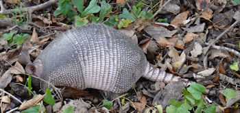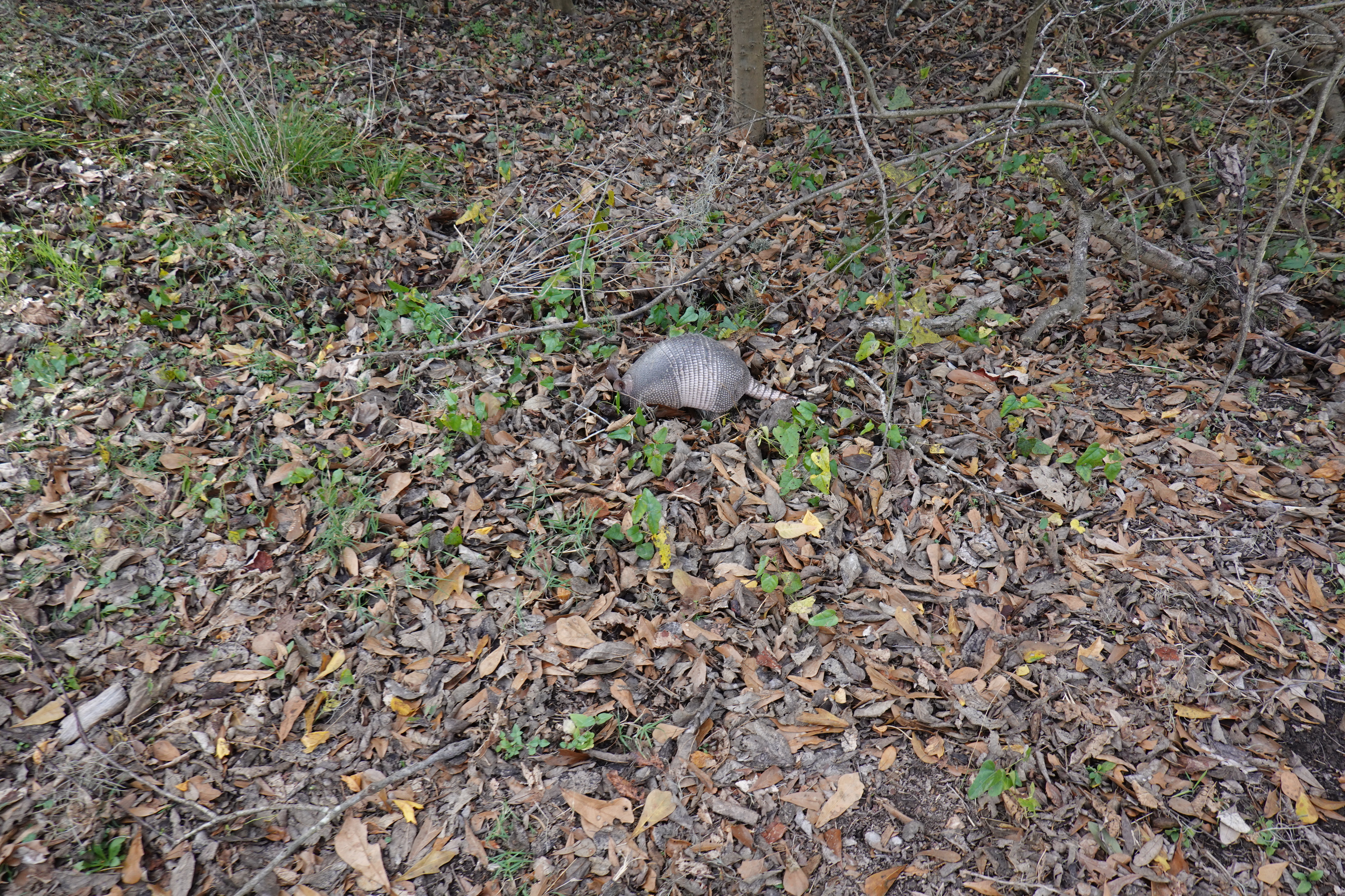 The dogs chased down their first armadillo! Not a great picture but they are not very open to posing with the puppies. This one had his head in the dirt and did not hear us coming down the path.
