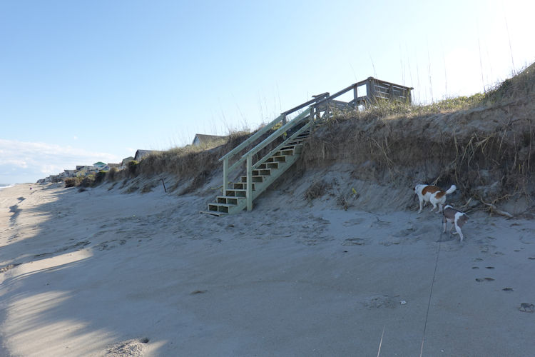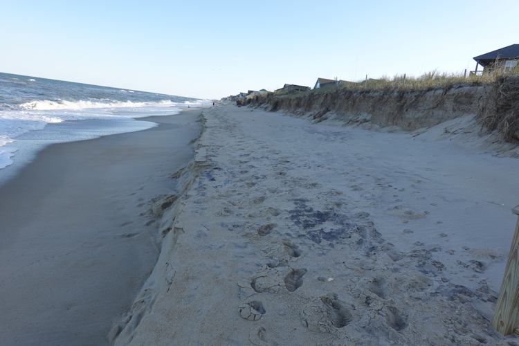 Here you see the beach on May 9, 2020. That is a five foot sand shelf. You would jump down five feet to get to the beach on the other side. That much sand was missing. It looked devastating.