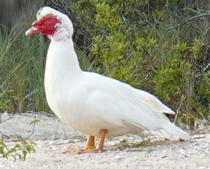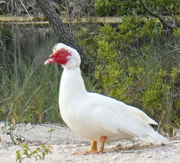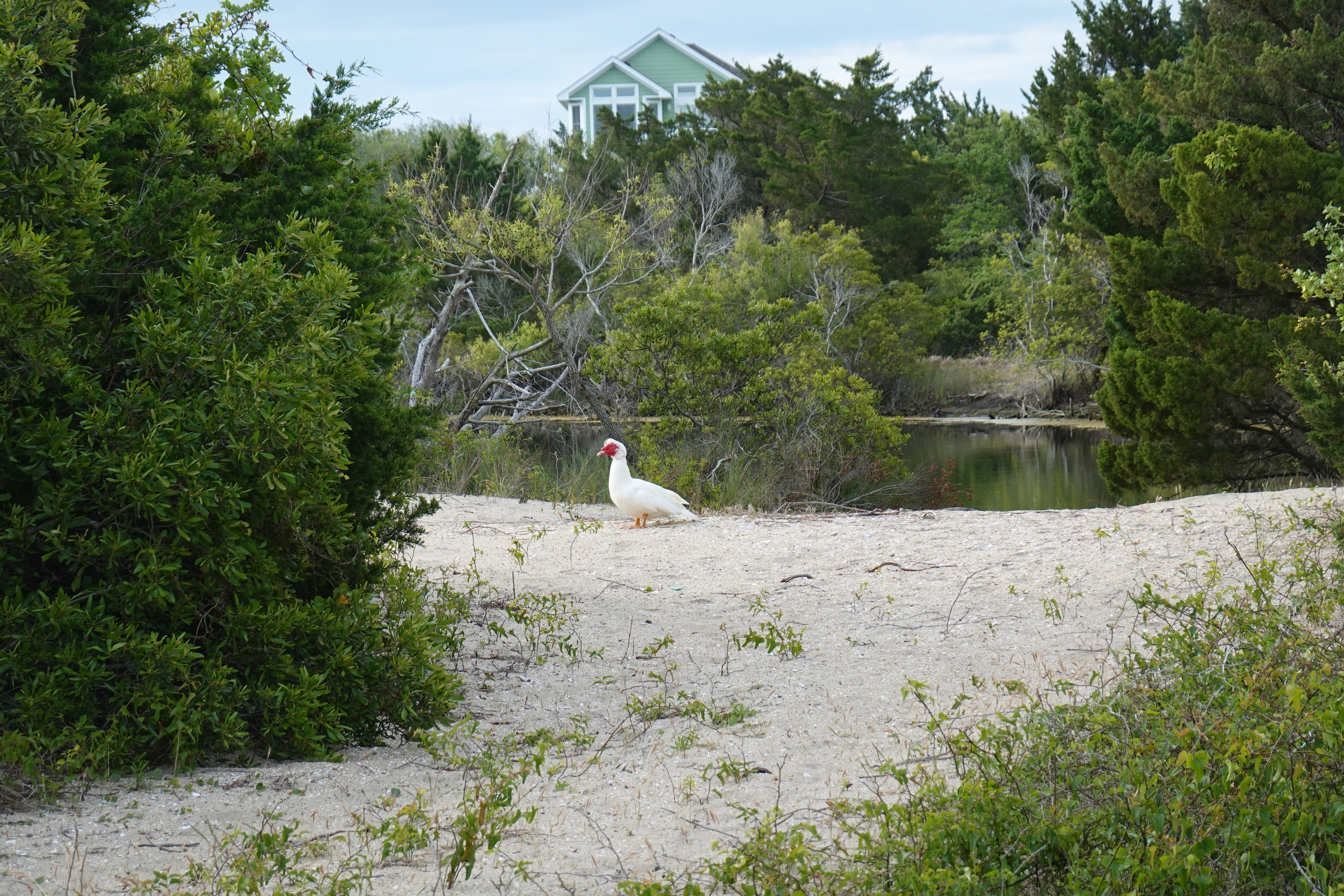 My Dad used to say, “He’s got a head on him like a Moscovy duck!” Until today I had not witnessed the head of a Moscovy duck. I could only imagine what he meant. Now I know. This duck is on a Kinnakeet Shores pond.