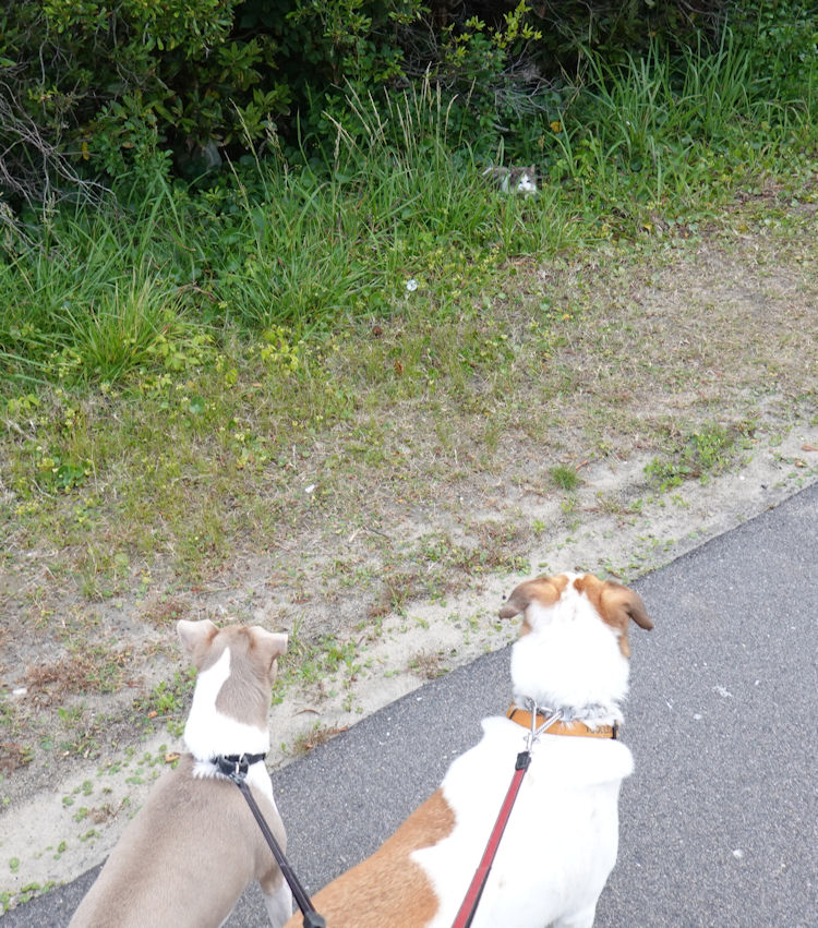 This is a deaf beggar cat that begs on the street across from the exit to the Food Lion. Lots of people seem to be leaving him or her food. But the dogs have figured out he/she is an easy mark.