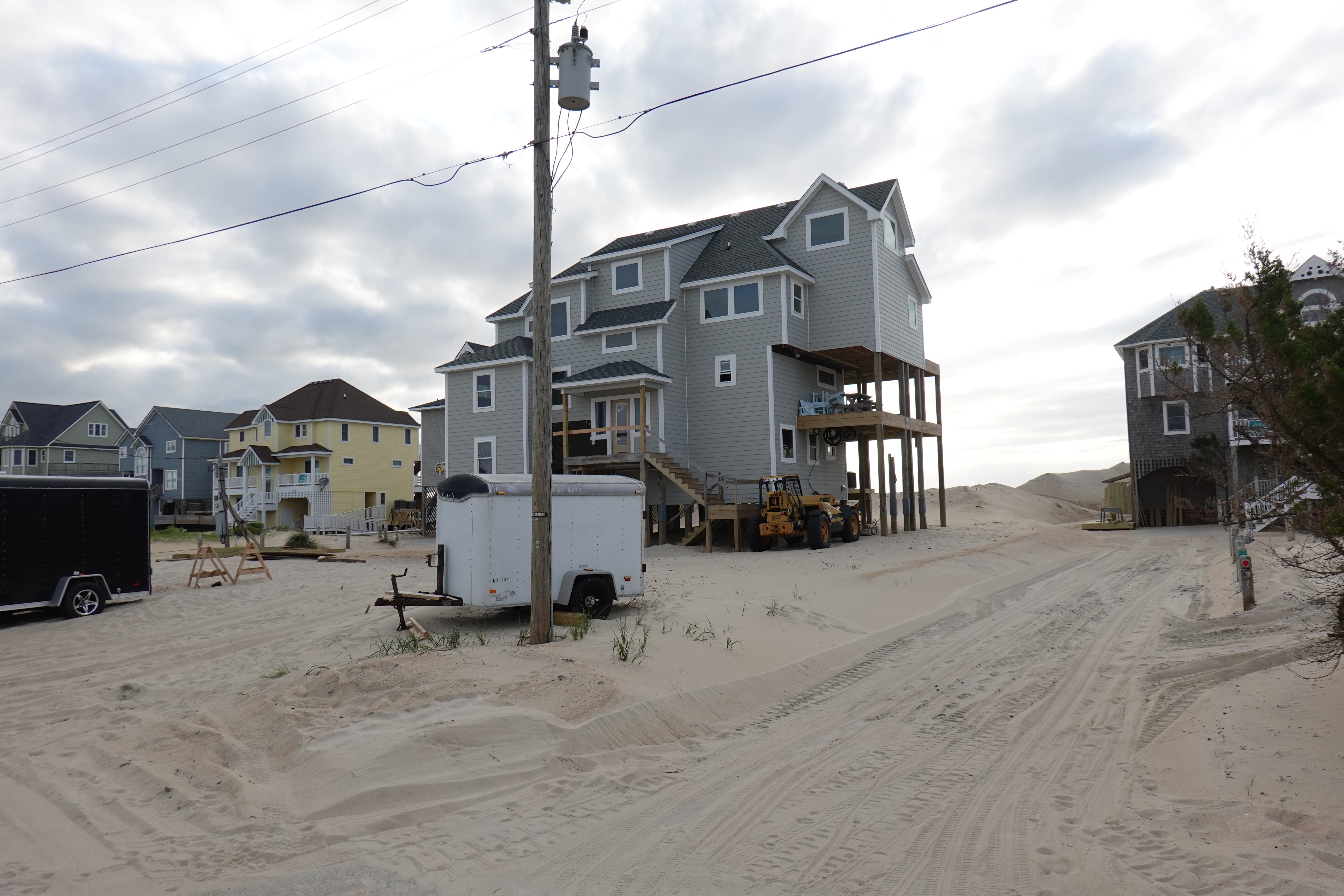 I first saw that they moved this home in April of 2019. Here is a full year's worth of work. Contractors on the OBX have a FAR, FAR, FAR different concept of getting a job done than on the mainland.