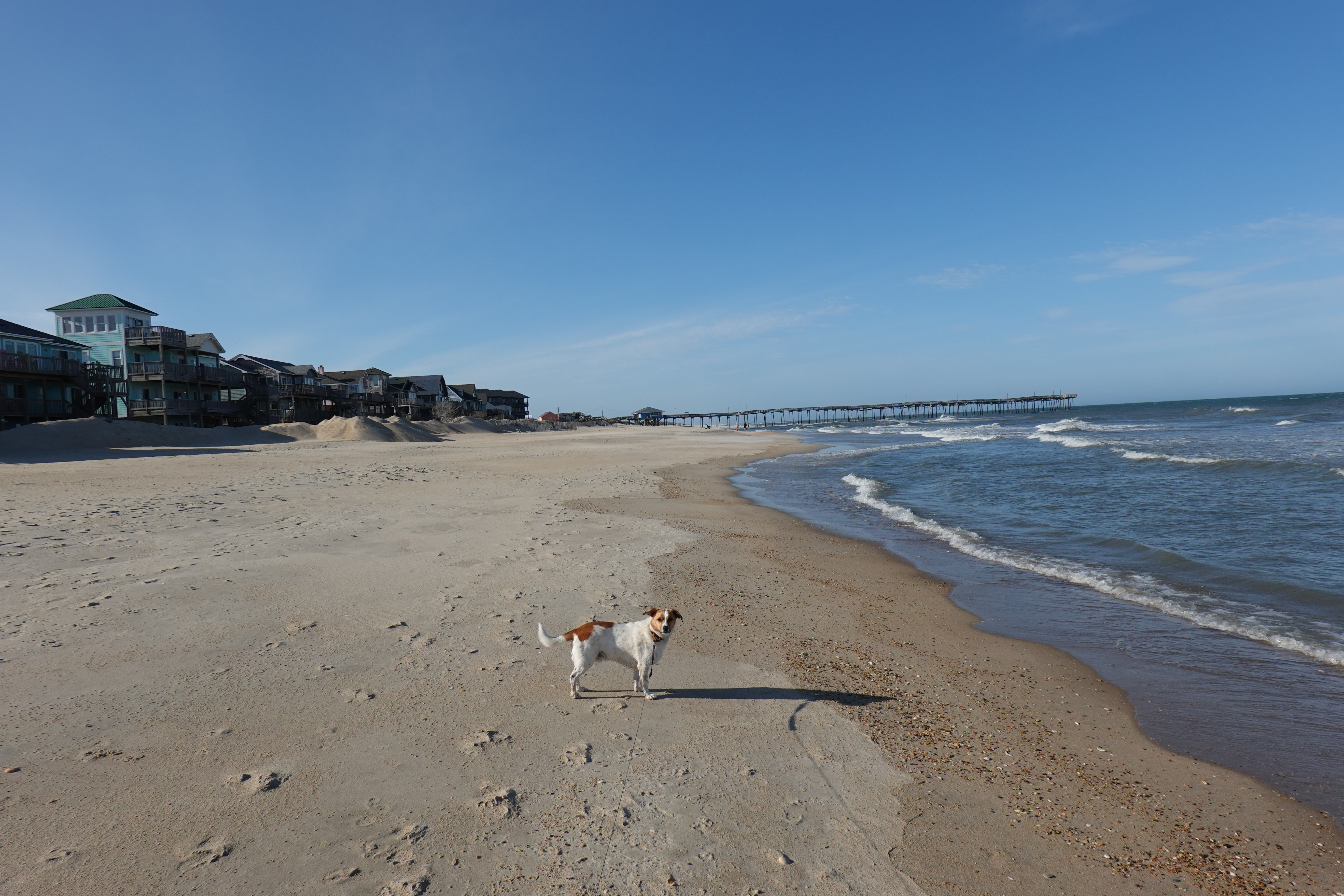 I didn't think Toodles really wanted to do a beach walk. He was THRILLED to be on the beach. Go figure. So many more smells inland. He went NUTS in the ocean.