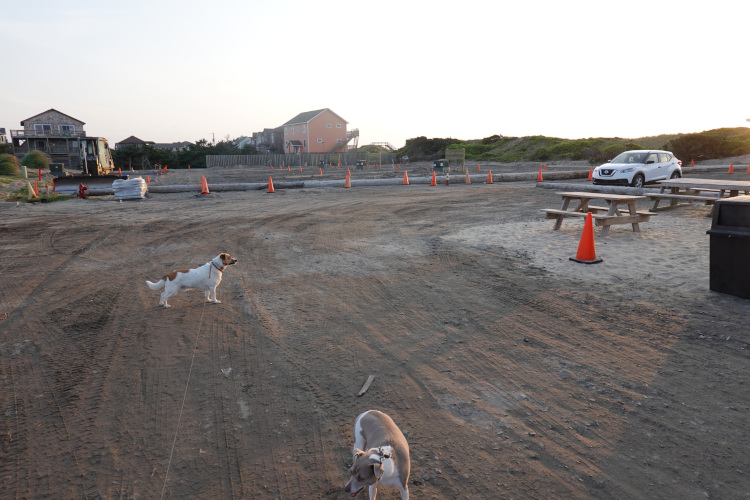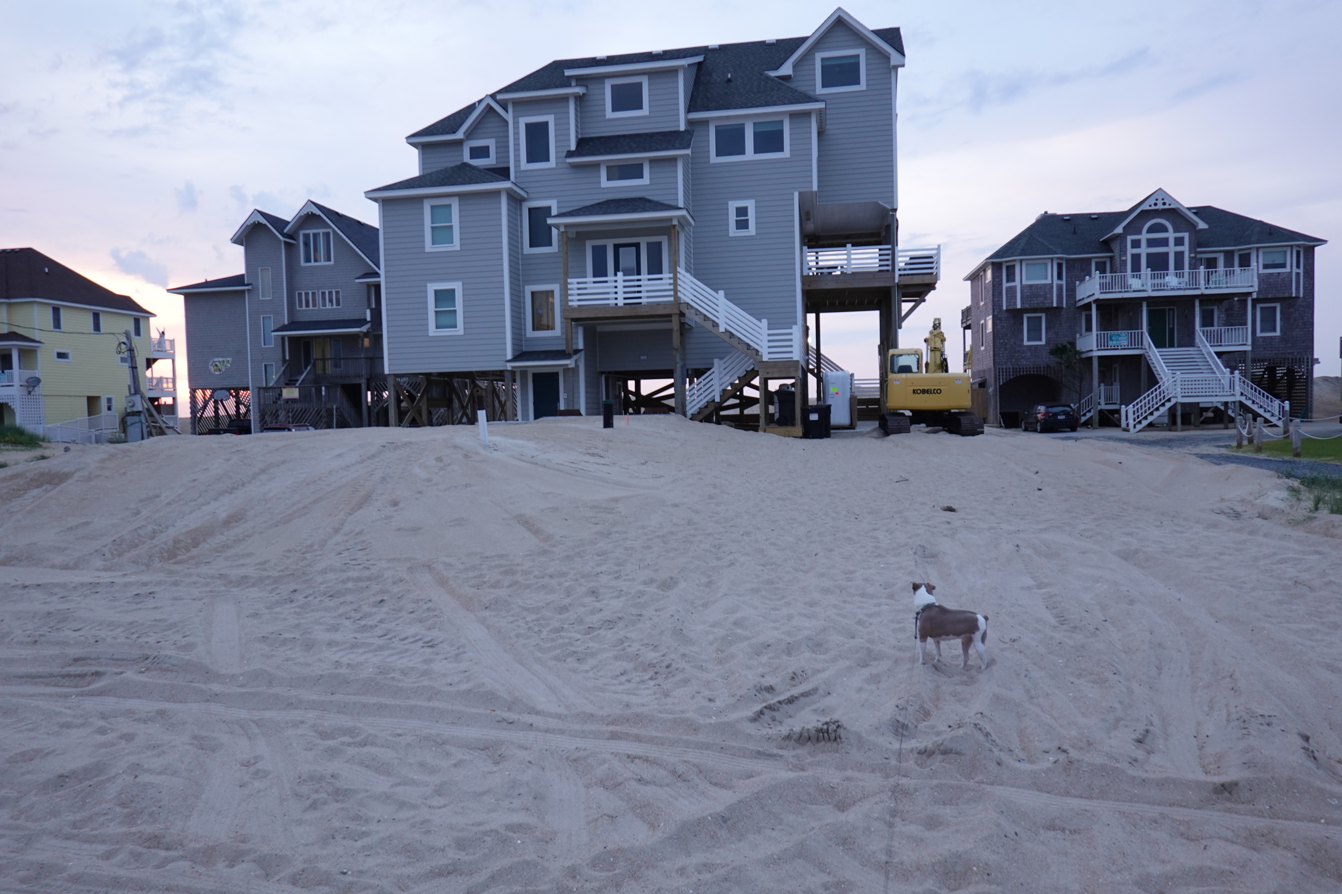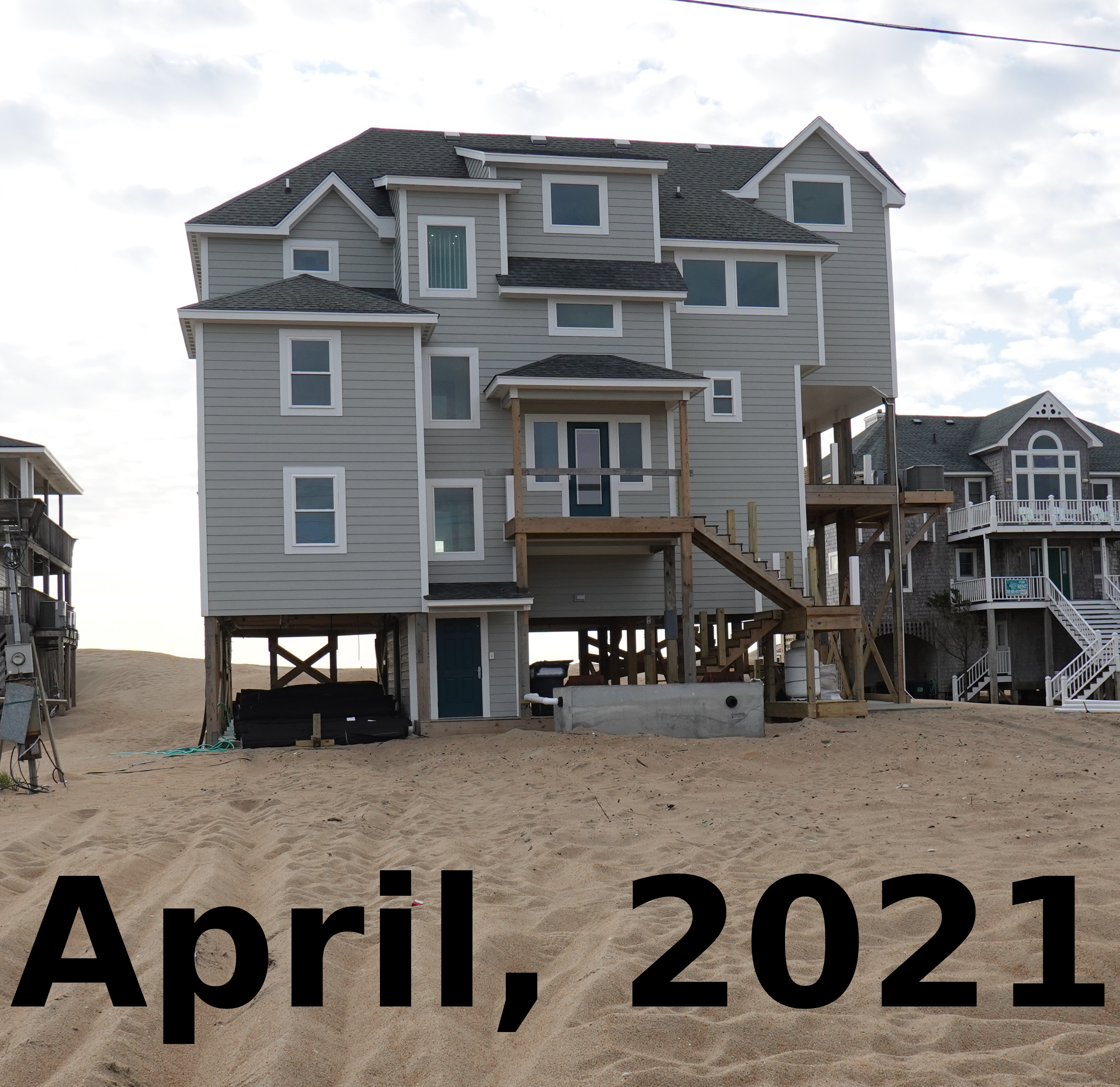 Just when you thought you've seen everything: Here is a link to the video which may be faster. Non-resident property owners are not the only ones that cannot get a contractor to work. This is the new Avon campground by Avon Pier. It looked that way when I was here in March. It looked that way when I was here in April. Yes they moved some sand around and maybe got some utilities in. I would have figured Koru Village would have had some pull and be able to get work done. We NRPOs are not alone. Now this house that they move a year or two ago, and that is still not ready. Now it appears that they have a RAISED drain field for the septic system. This is on Ocean View in 2021, prior to the beach nourishment. In an average storm the waves break on the pavement of Ocean View. It will be interesting seeing how the storms treat this.