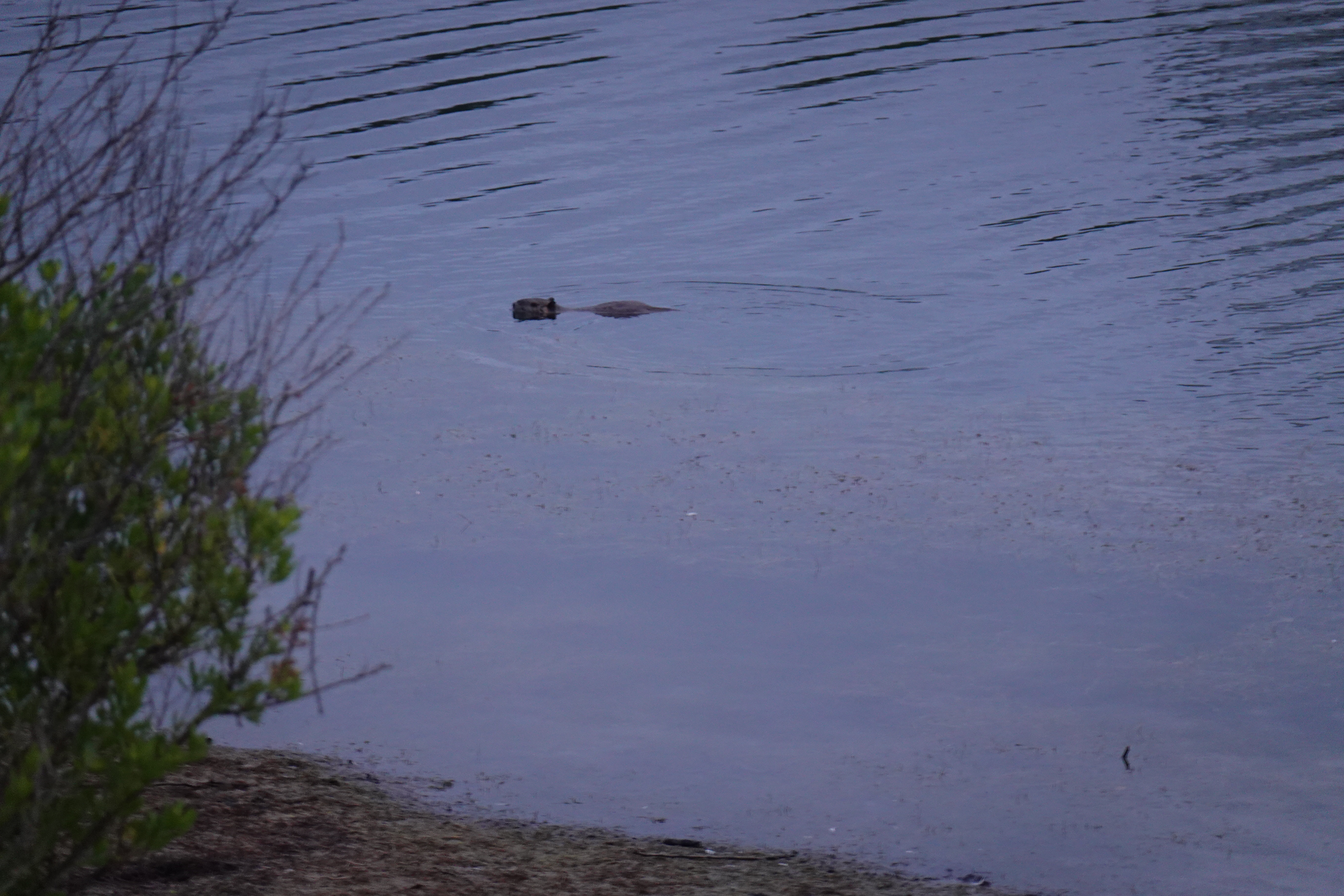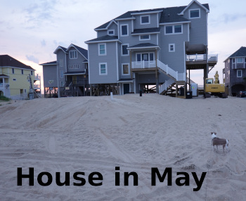Start 46,033 -- End 47,637 -- 1604 miles Click any of the images for a higher resolution picture A very nice trip down with 93 degree weather in Ohio and mid-70s on the Outer Banks. Toodles has his foot problem ... still. I have a bit of sciatica ... still. But here we are! Both of us are staying off the beach and instead spending our walk in the developments. DID'JA KNOW ... that a groundhog, caught between two dogs and a lake, can indeed swim??? Sound side, a single white bird, was taking good advantage of ample fish shared with no other. What is that? A cat, moving slowly toward prey. CAT! CAT! Two dogs comin' CAT! Ommph! Not a cat! A unit of a turtle!
