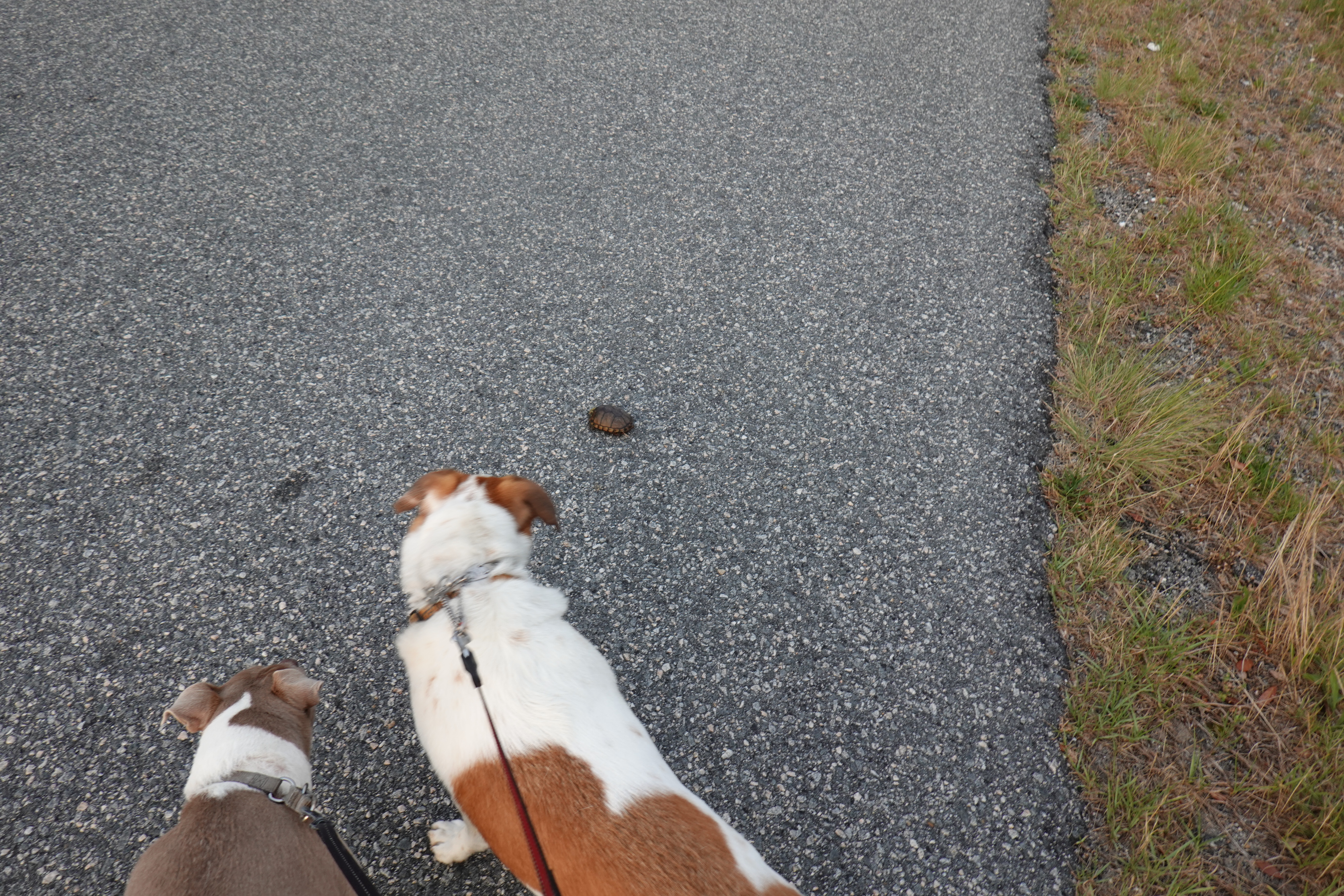 And during our walk on Wednesday, another turtle, albeit a little guy. He was still captured, interrogated and released.