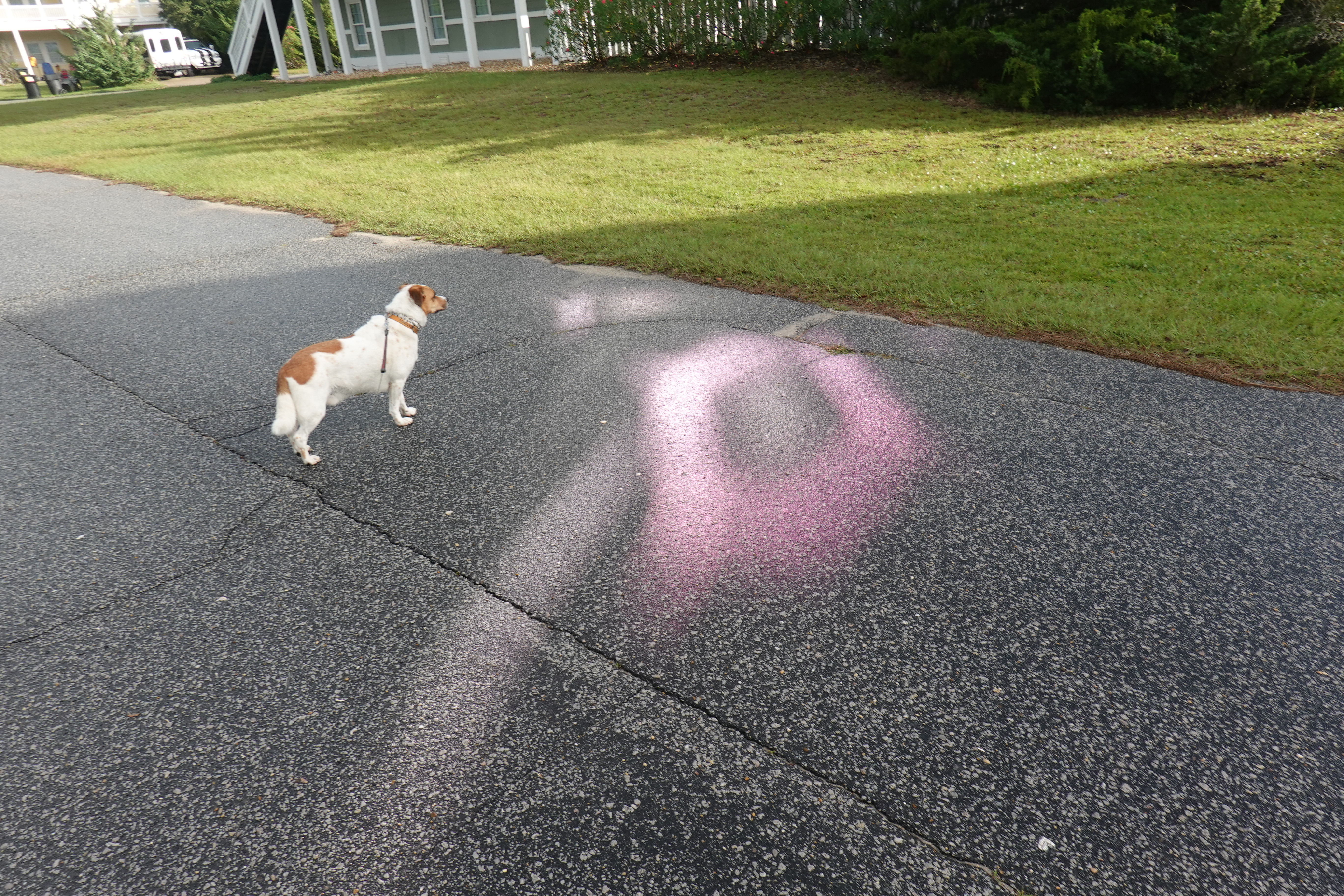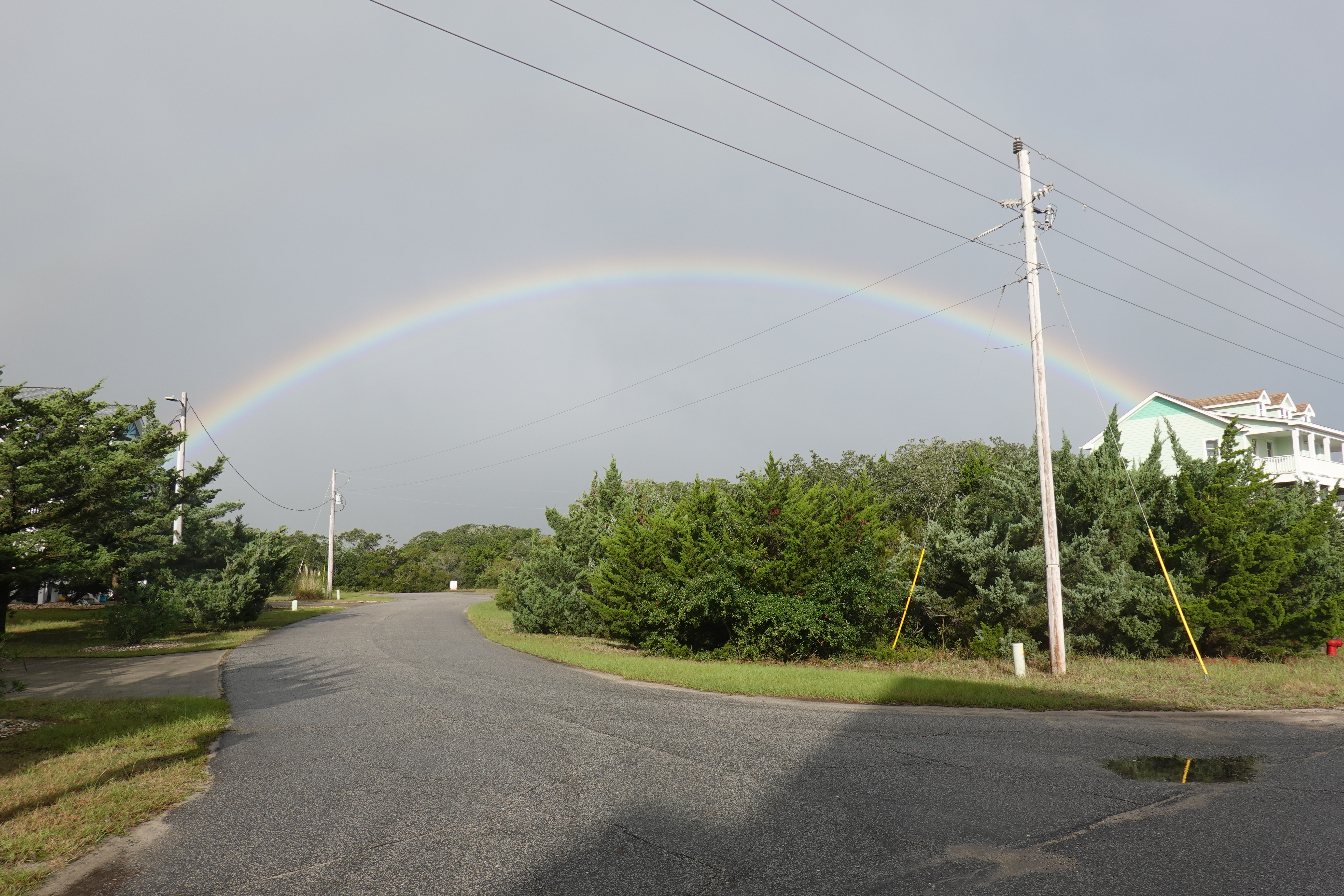 Start 49,642 -- End 51,335 miles -- 1693 miles Click any of the images for a higher resolution picture This is the HOA annual meeting trip. The trip down was rainy up until the overnight at Lowgap. The trip through North Carolina was through heavy, pouring rain. The trip on the Outer Banks was a deluge of rain! No street flooding but darn there was a lot of rain. There is a near-tropical system just off the coast pouring rain in off the ocean. Heavy, unrelenting rain. Put my swimsuit on to bring the stuff into the condo. The system petered out, but not after an initial report that it could develop into a hurricane(!). Rain all of Sunday and most of Monday. Dogs are getting restless. The highlight of the trip was finding the end of the rainbow. I found the end of the rainbow. No, really, I did. I took a picture. It ends in an old, ratty BBQ grill on Dory Lane in Avon, North Carolina, on the Outer Banks. Another childhood fairy tale debunked. As totally false as the tooth fairy and Santa. There isn’t a pot of gold. Not even a leprechaun. As long as we're on it, this puddle was reflecting a specific color in a specific direction. Cool! Saw some Mocking Jays doing a little dance. How cool!