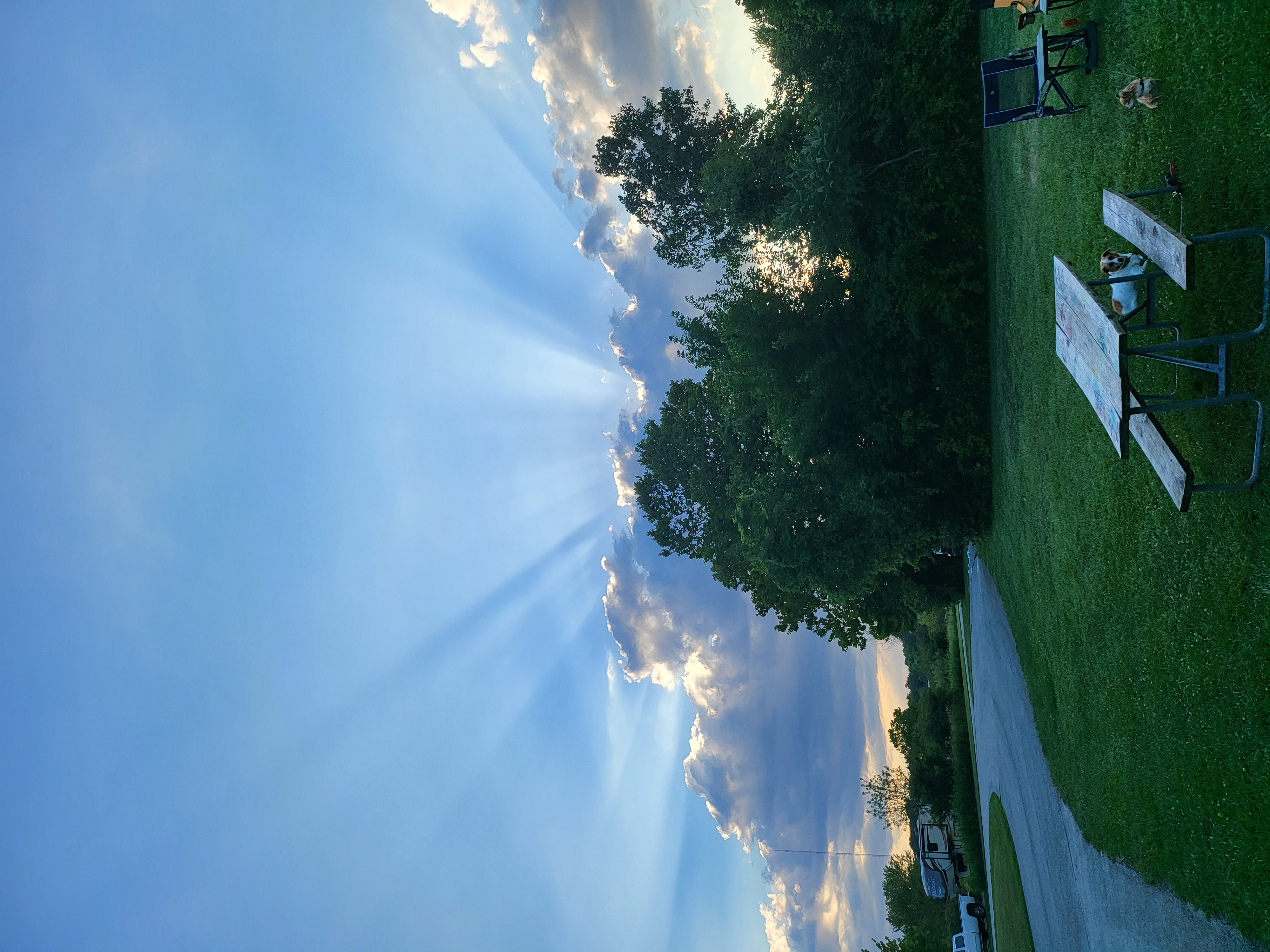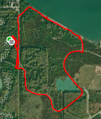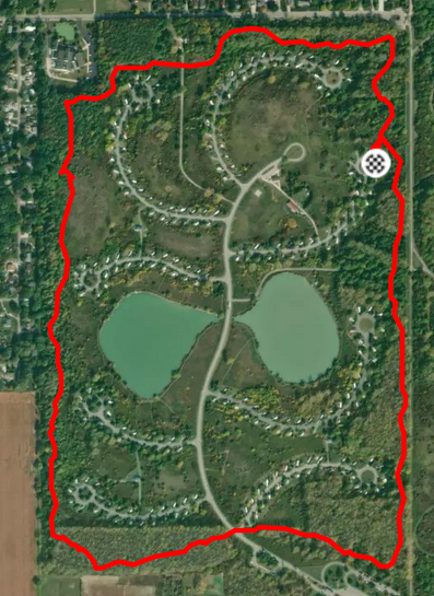 for a higher resolution picture Mid summer isn't my time for trips, but what the heck! Although hot with temperatures up around eighty-five, we still took walks, read, worked and had fun. It's 2.5 miles around the campground: It's 2.5 around the hard path:
