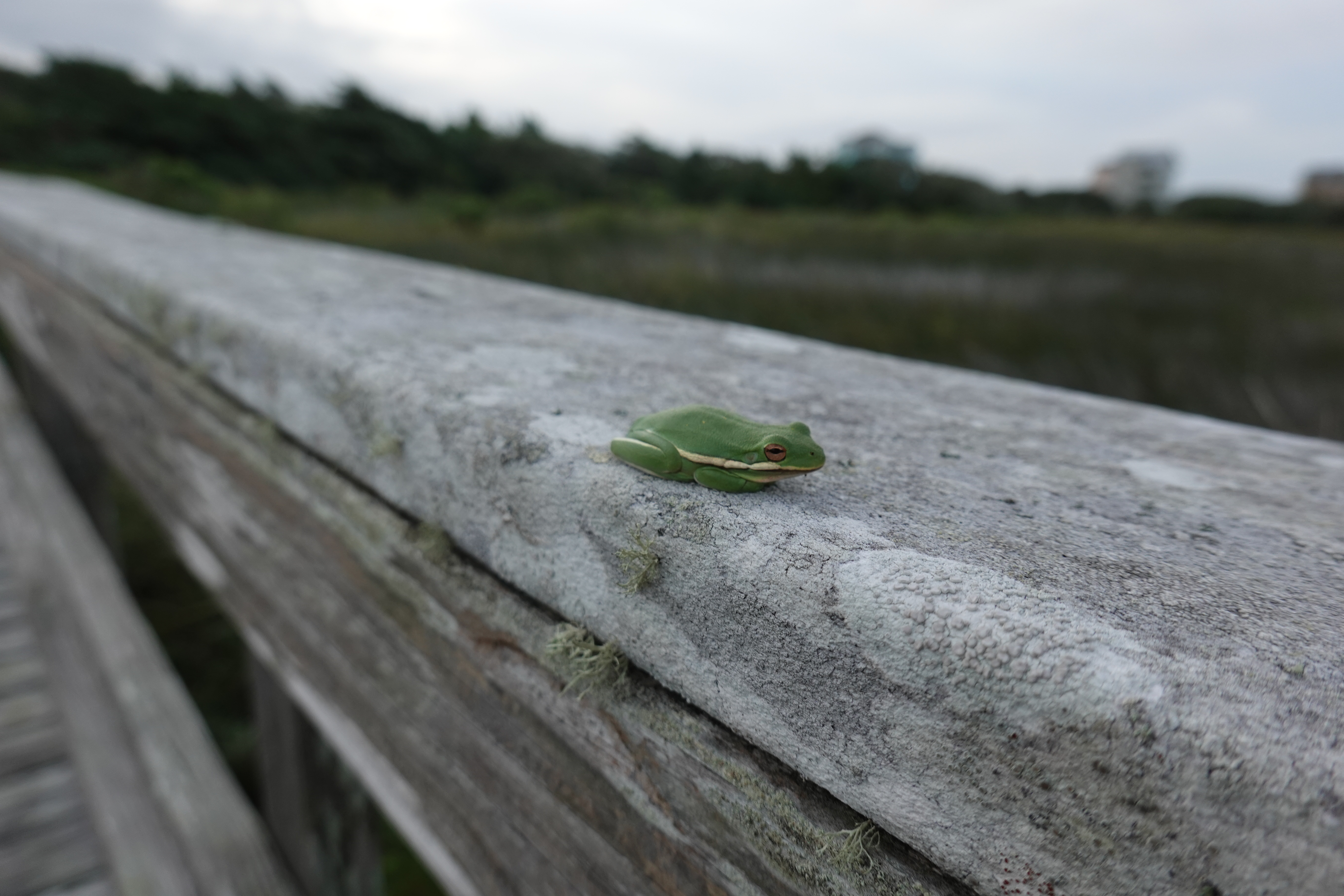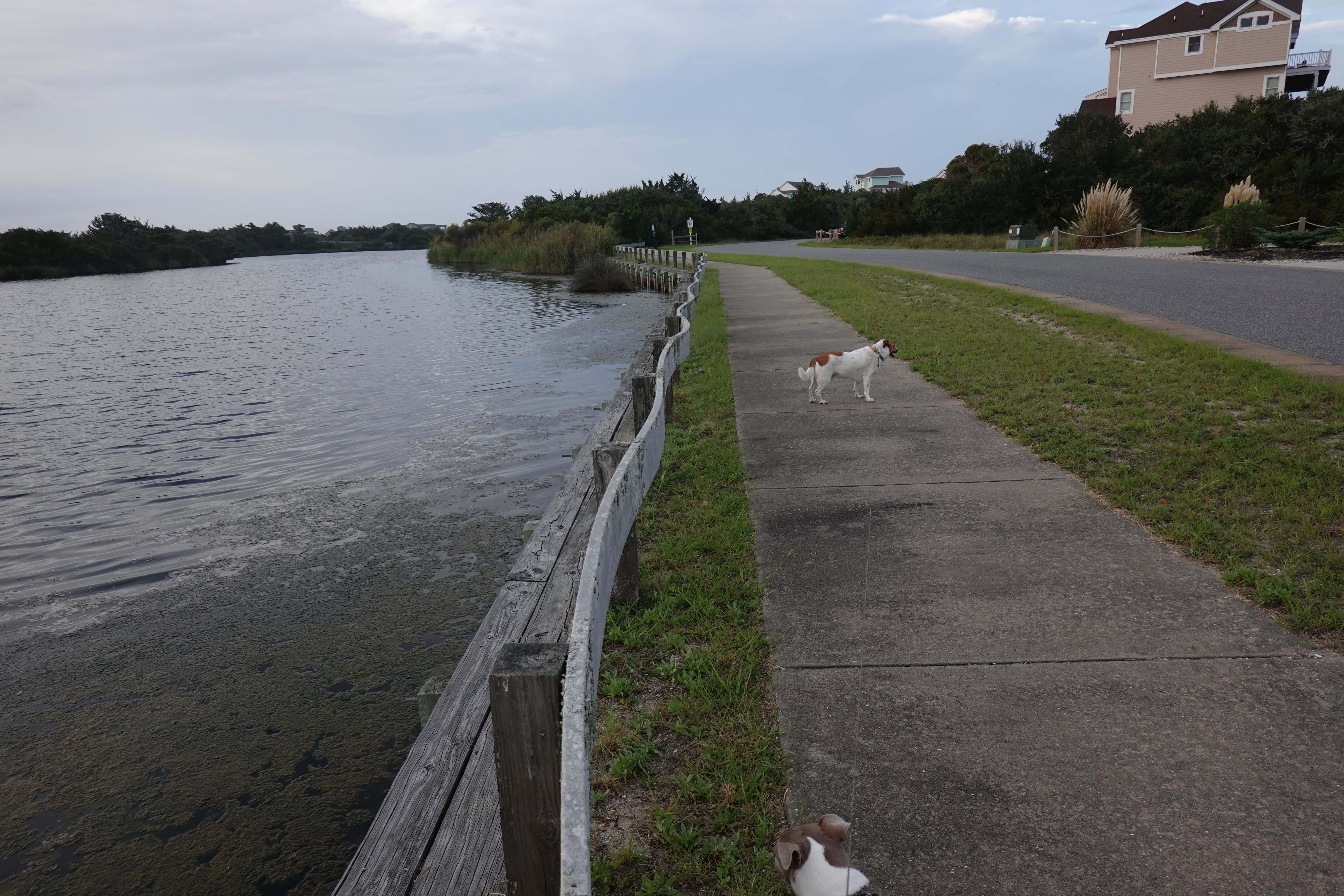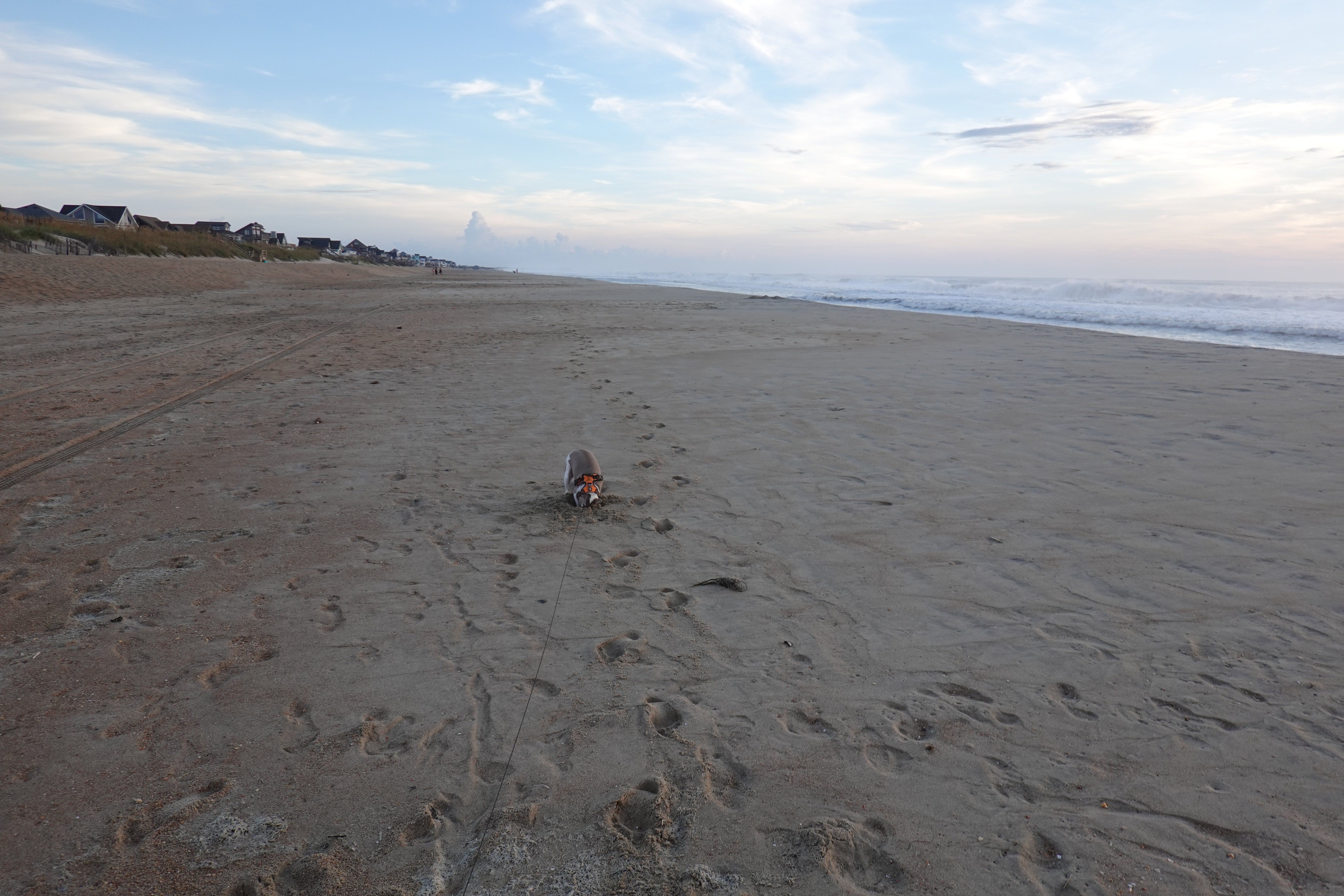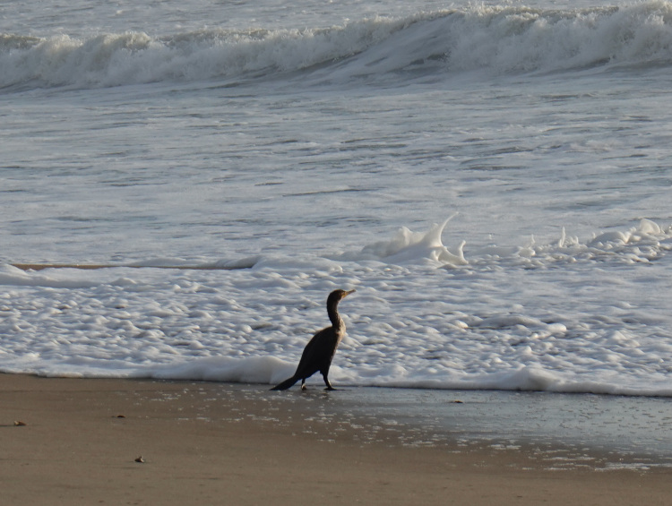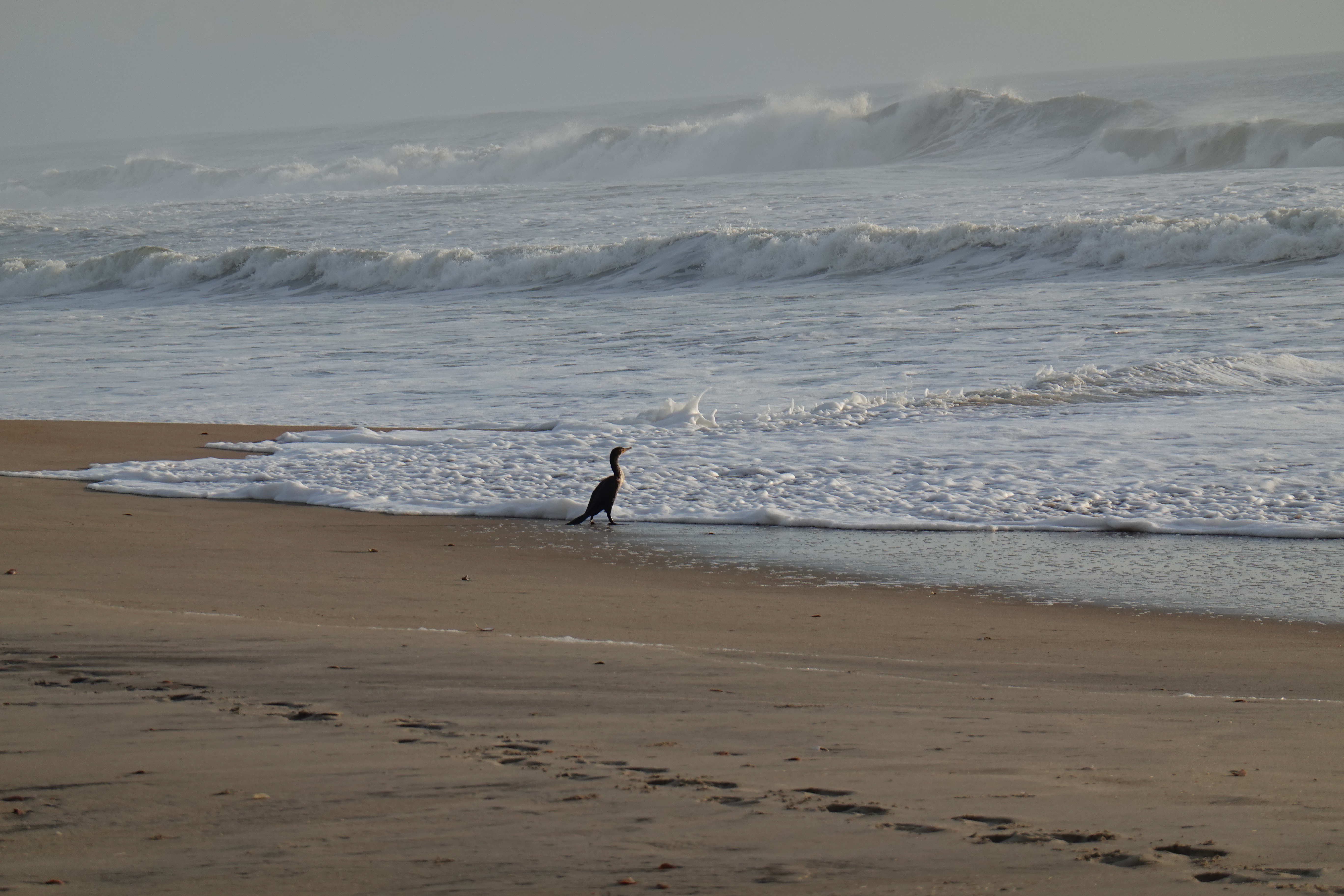 This is my first trip to the new beach! Nourishment provided about 100 yards of fresh new beach. Fixed a bunch of stuff including the internet. People resetting the modem cause the TVs, phone, thermostat and what not to loose their mind. Massaged that back and put yet more stickers on things. Fixed the gate which was binding. Put in a bunch of new screws to hold down old nails. Got pretty close to this sound-side heron. Then stepped in sound mud and got everything dirty. Watching a comorant pad his honking big flipper feet on the beach made me realize what I look like trying to wear flippers at the ocean.