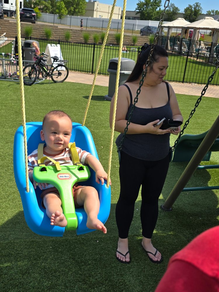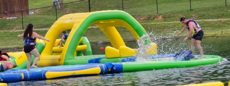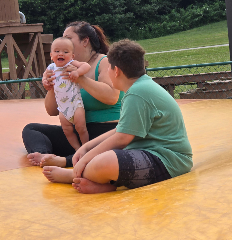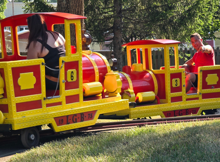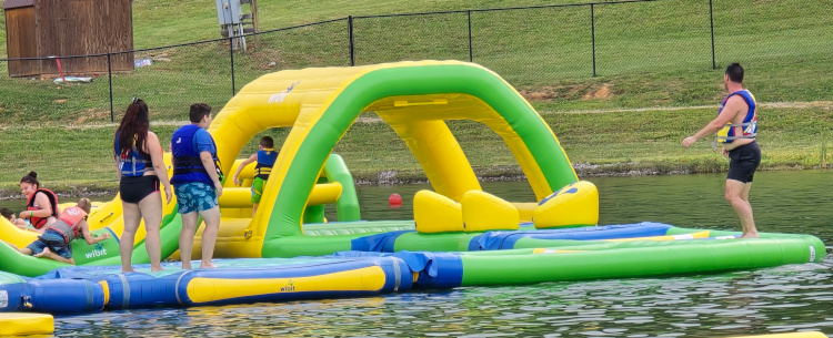 Three hundred and ten feet down. I hate mountains. I hated them at the surface. I hated them three hundred and ten feet below the surface. We took the “Historical Tour." I had been there. I had done that. I probably have a t-shirt from Mammoth Cave. No matter. It was great fun watching Liam and Lesa experience the cave for the first time. I smiled a bunch while Matt, Landon riding in a front pack, negotiated the low ceilings and, especially, “Fat Man’s Misery.” Fat Man’s Misery has very low ceilings and a very tight passageway. Matt isn’t fat but having a Landon belly while negotiating Fat Man’s Misery was something to behold. The Historical Tour ends with a three hundred and ten foot climb to the surface. We stayed at a Jellystone Park. They had excellent facilities. All kinds of things to do. Lesa rented a golf cart. They had a big, shallow, warm lake with huge blown up toys to play on.