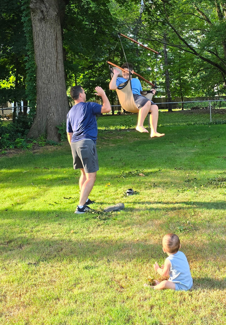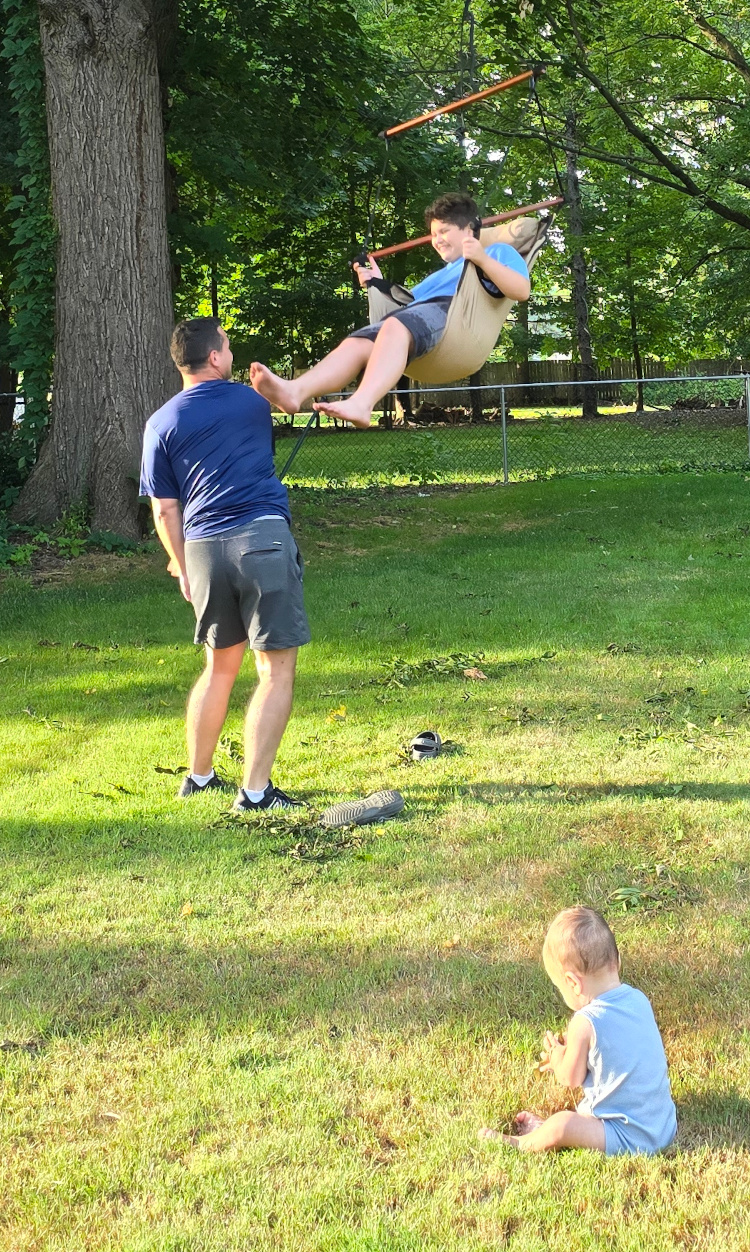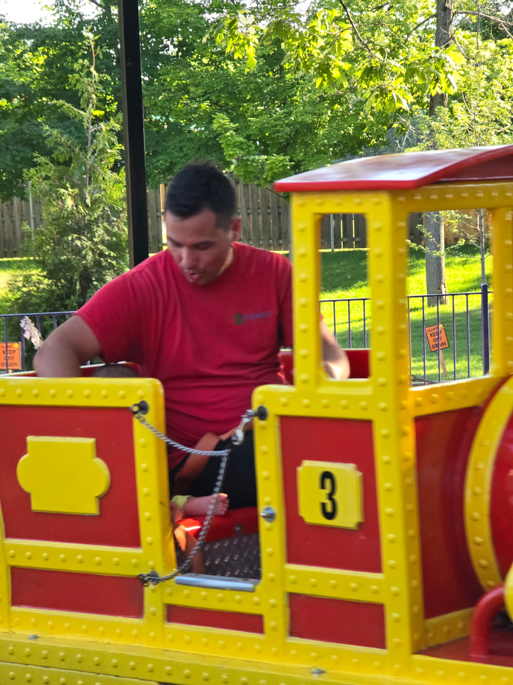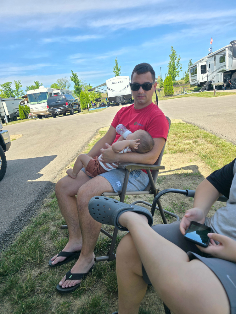 We had a nice site at a large King’s Island campground. Day one was devoted to the amusement park. Day two at the water park. Matt and Liam rode all the major coasters. Landon did his thing on the merry-go-round, cars, etc. On the merry-go-round Matt stood next to Landon riding the horse. I have a King’s Island Fred Flinstone shirt that is about thirty-five years old. I remember taking Matt to this park. And I remember standing next to a merry-go-round horse holding Matt at about that same age. It brought a tear to my eye, that did. I found myself wondering if my dad was behind me watching. Someday, Landon will be standing there with his kid, Matt on my horse and Dad and I behind.