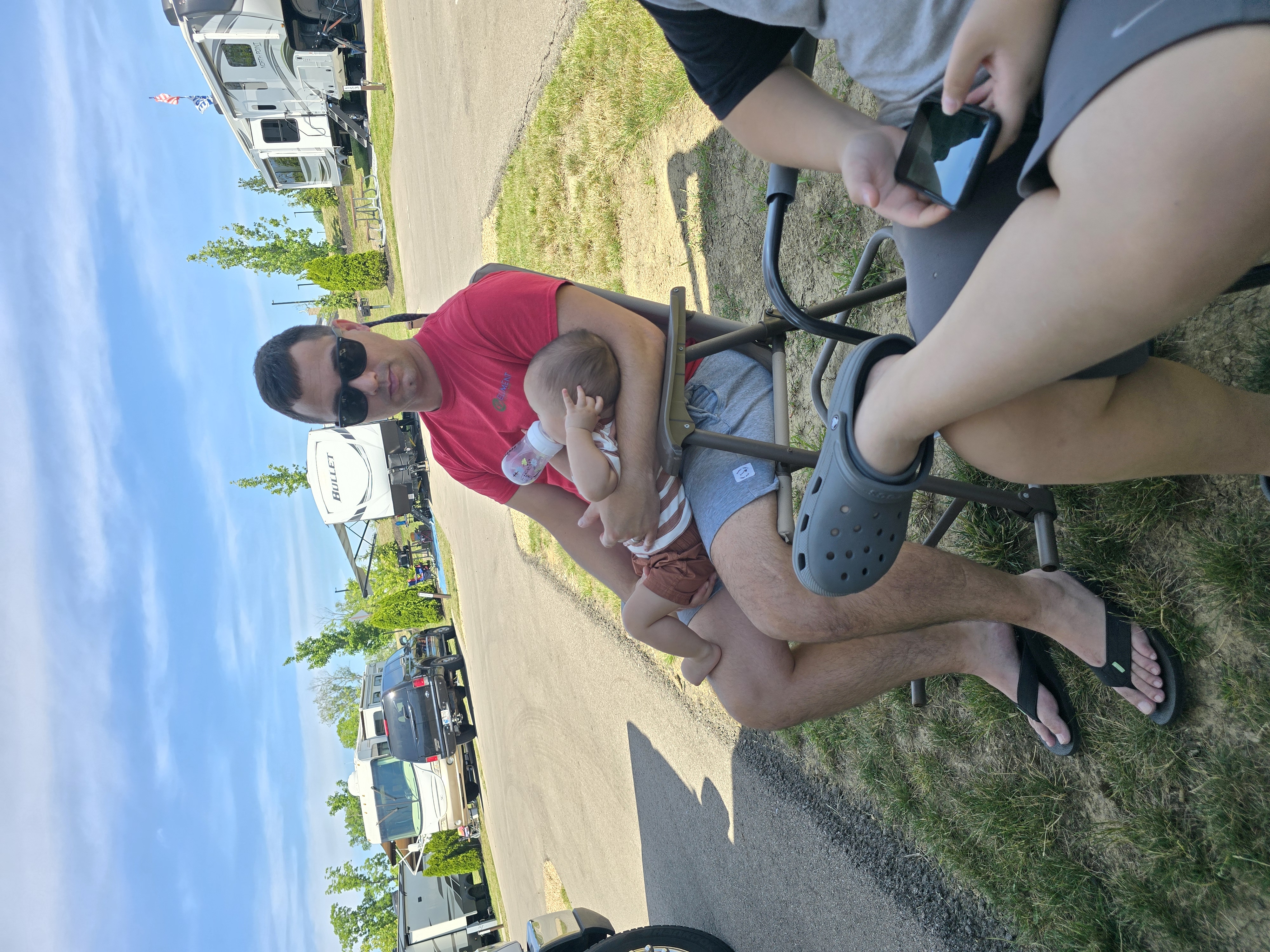 Gatlinburg I had visited Gatlinburg with Matt when he was just a baby. He had no memory of that visit. I remembered a long street with local vendors selling things they had made by hand. Not now. Most of the street is a tourist trap with trashy gift shops. It had been worth a visit. Still fun with the family. We were able to park the motorhome at the Smokey Mountain Visitor Center and shuttle into Gatlinburg. The traffic is stupid and crazy inside and outside of the park. The visitor’s center took a clue from the vendors at Gatlinburg. We found a visitor center that was 97.3% store and about 2.7% national park. The Smokey Mountain Visitor Center had little to do outside of profit. Dollywood Dollywood is a respectable, clean and well maintained amusement park. They have great parking for an RV. It is on a mountain. We went through a lot of up and down. Again, Matt and Liam knocked off all the big rides. Landon, Lesa and I hit the smaller rides. The splash park was day two and Landon had a great time. He made friends in the water. HOCKING HILLS STATE PARK We stayed at a nice KOA. I was able to get the motorhome to the visitor center without a problem. That was a nice visitor center. We hiked a bit in very hot weather. I had a devil of a time because of my knee and because of... wait for it … mountains. Matt and Liam determined to continue walking but a storm forced us back. BACK AT HOME Back at home Landon got to sit in real grass ... without fire ants.