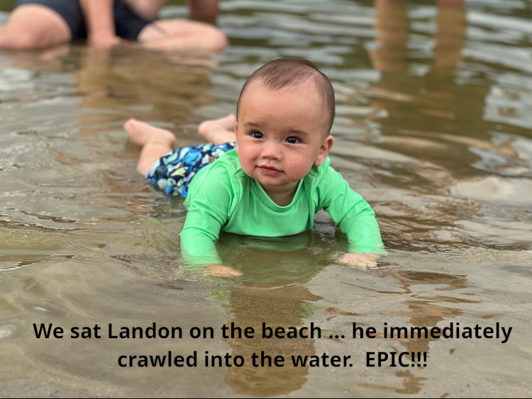 Landon was deposited on the beach. He immediately fell in love with the sand. But he also crawled right into the water. Not all the way. Only as much as he could. By himself. On his own. Epic. DOLLYWOOD and GATLINBURG