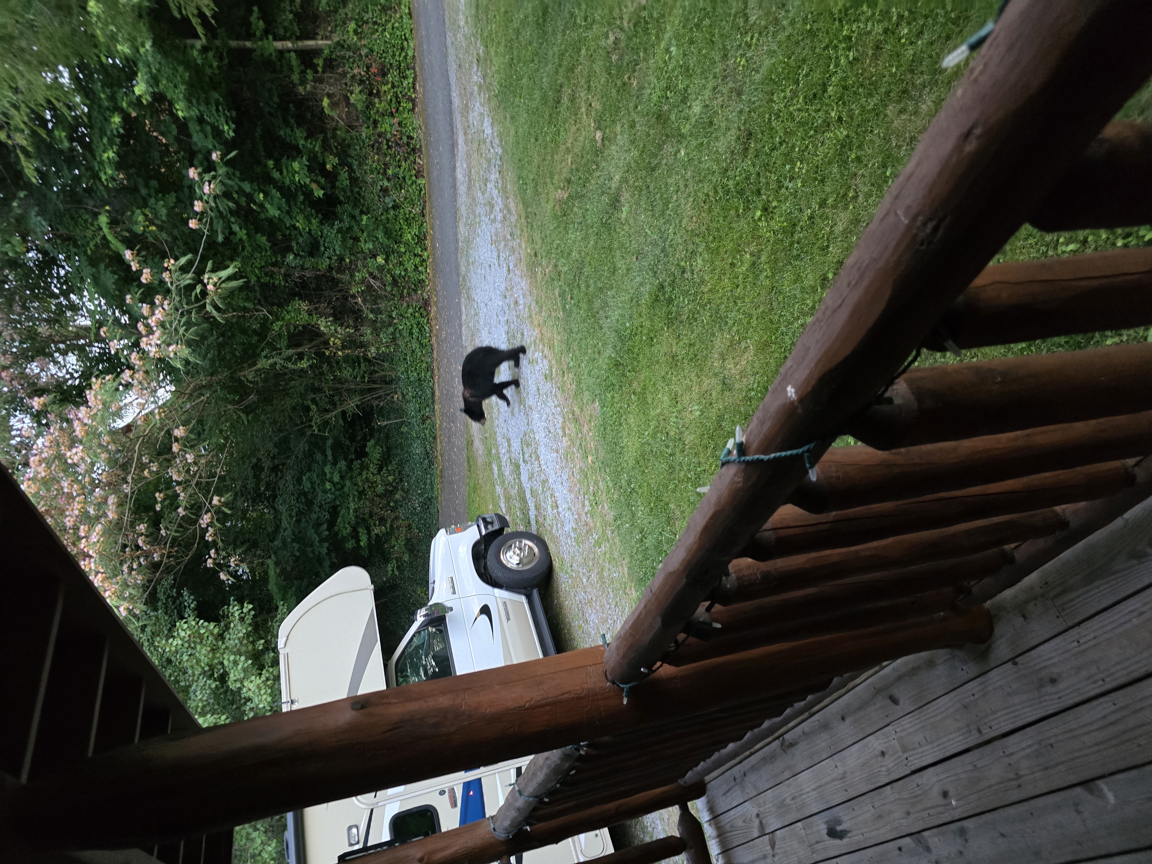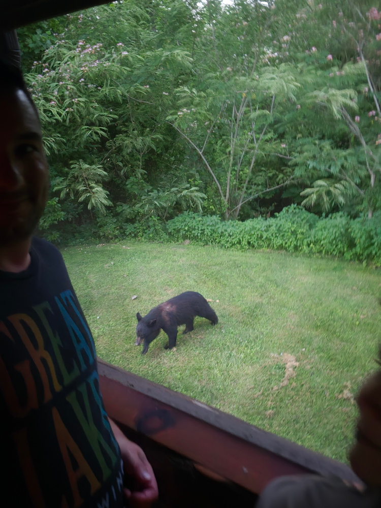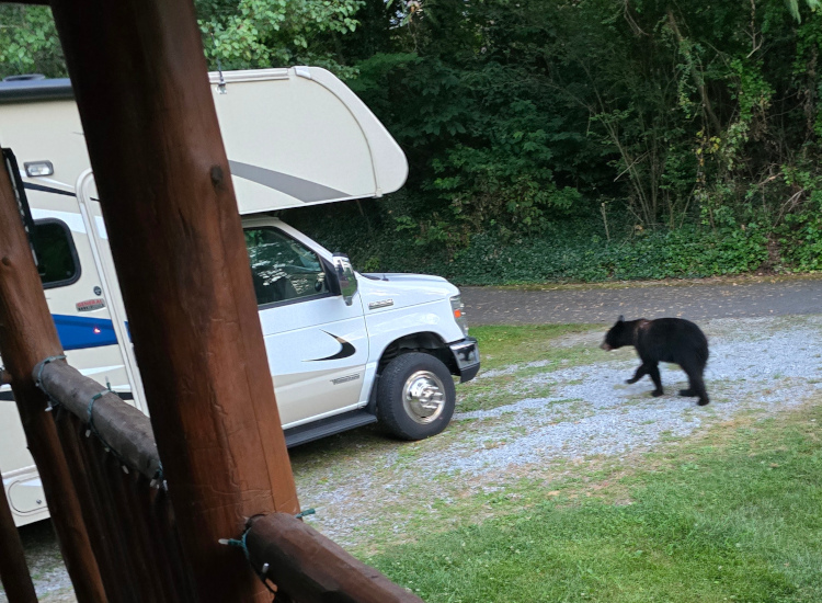 We stayed at a rental home. The first day we were tired. Matt and I were sitting in chairs in the back yard. Matt fell asleep. I went in to take a take a shower. Matt came flying into the house reporting a large animal coming out of the woods. Indeed! Two big bears trundled through the yard, inspecting the house and the motorhome. Friggin’ awesome.