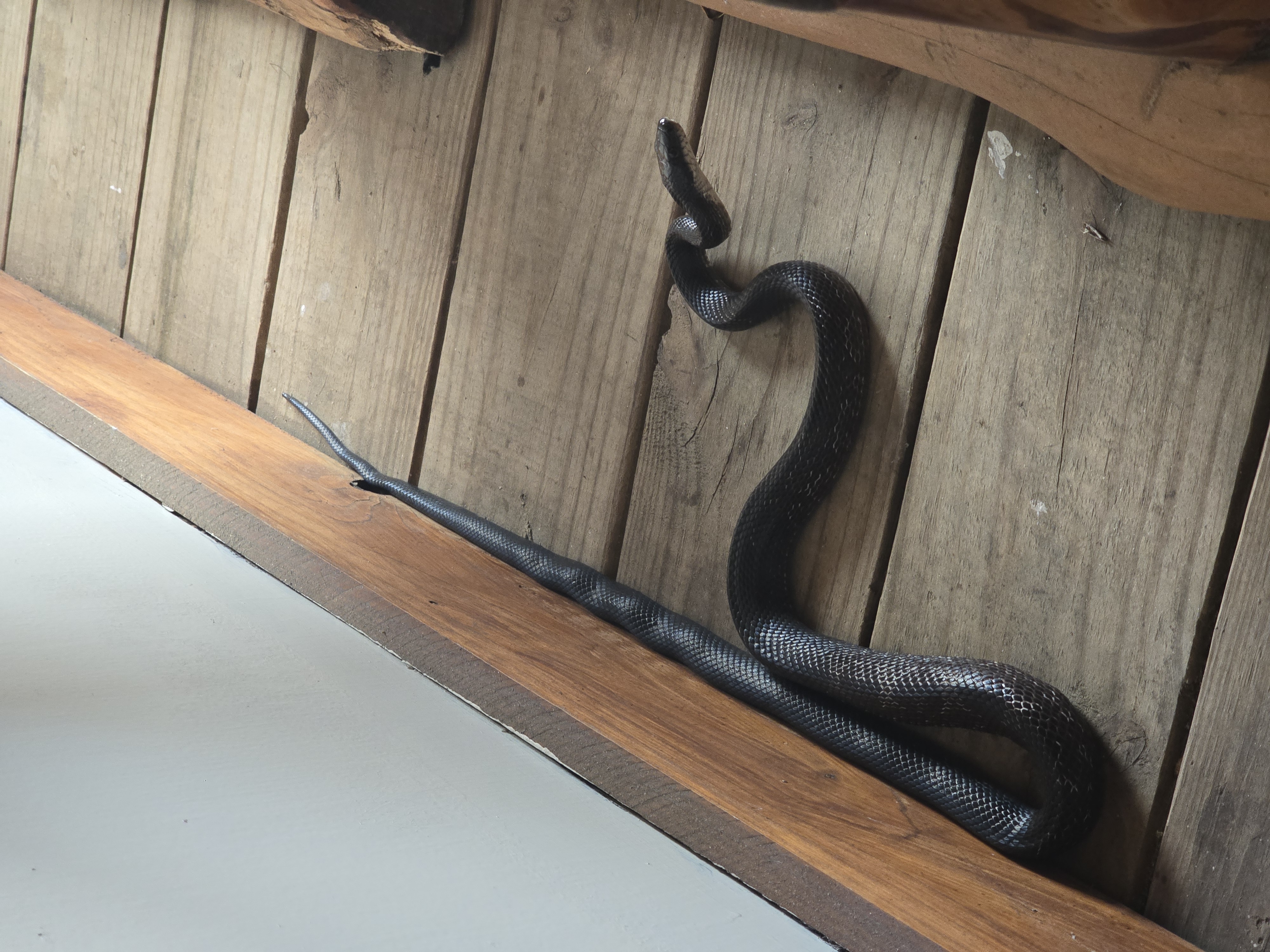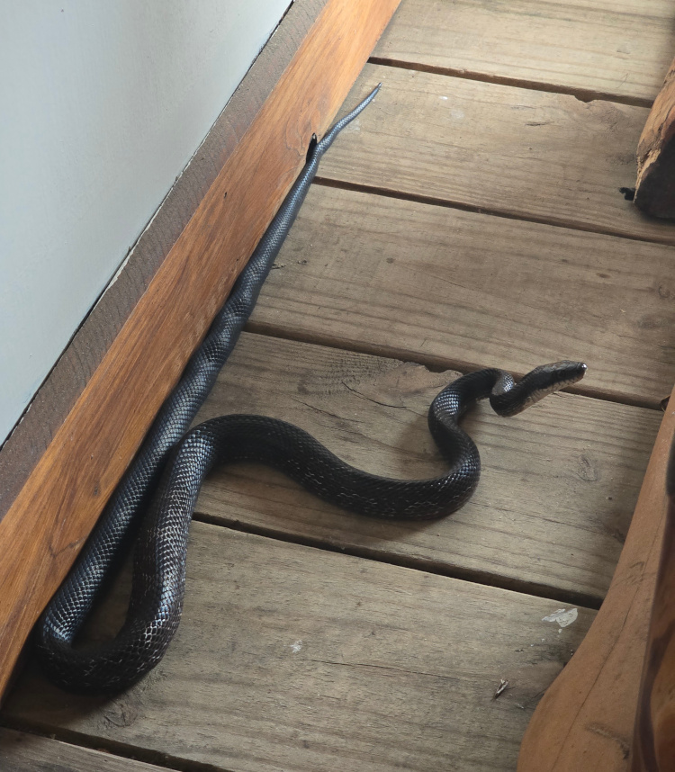 While on the back porch of the rental Liam reported a snake on the floor of the screened-in back porch. It was a large rat snake. He found his way out.