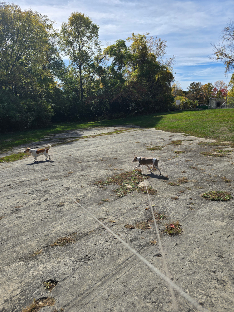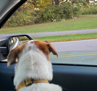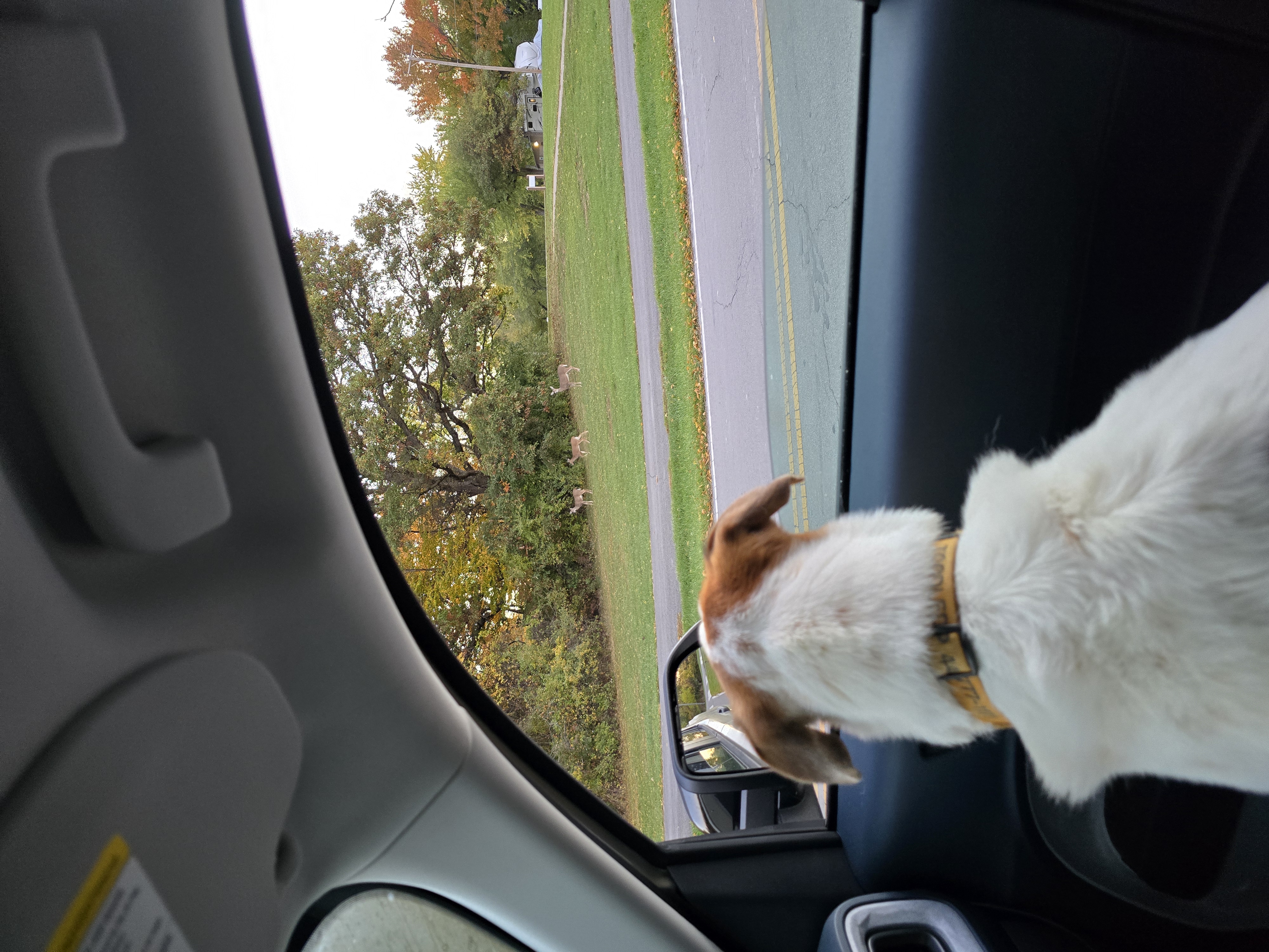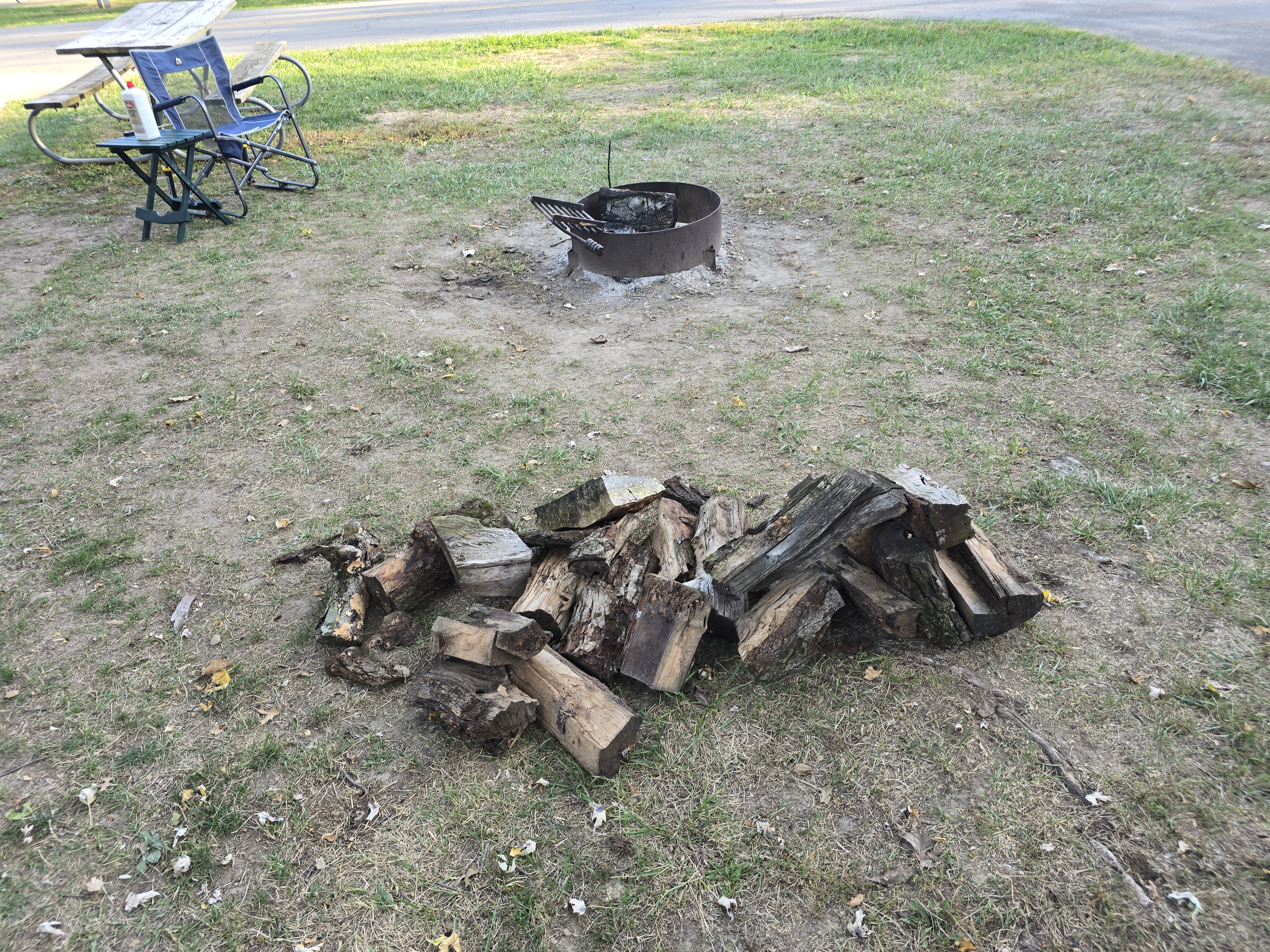 First some statistics: The motorhome-truck combination is forty-four feet long. The towing mileage does NOT register on the Maverick. We took our first car trip to Catawba Island State Park and found what could only be described as a goofy joke. The entire state park consists of a boat ramp. That ramp is hemmed in by VERY TIGHTLY packed, expensive looking condos and homes. It is not in any way a park. It is a state-operated boat ramp. Not that this is bad, but if someone was looking for a walk in the woods, well .... Lots of wildlife. While coming back into the park, we came upon a deer that watched the goofy out-of-control dogs having a fit. There are hundreds and hundreds of squirrels. I don't understand the lack of raptors given the number of dinners available. I brought two large containers of wood. One container is enough for two nights.