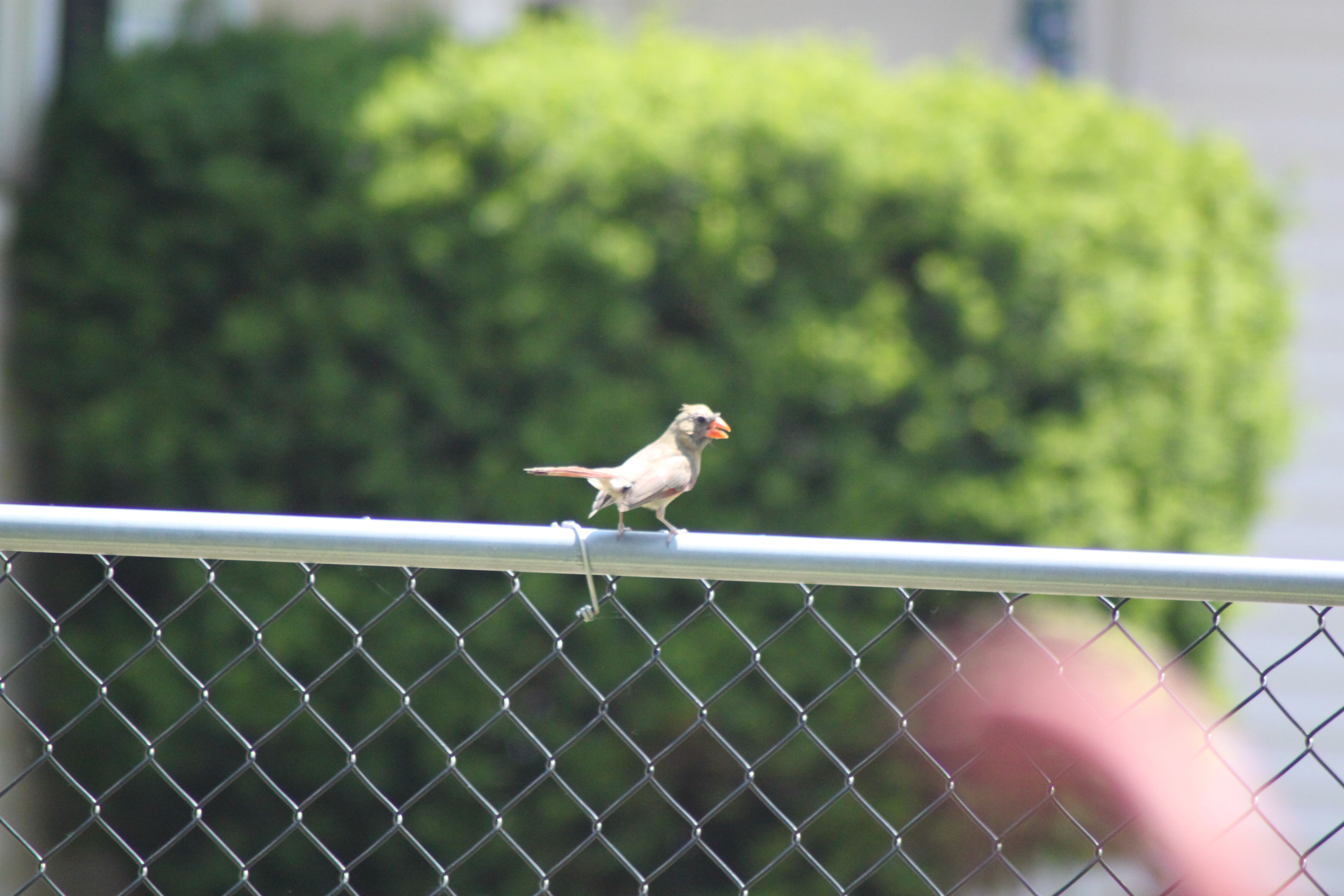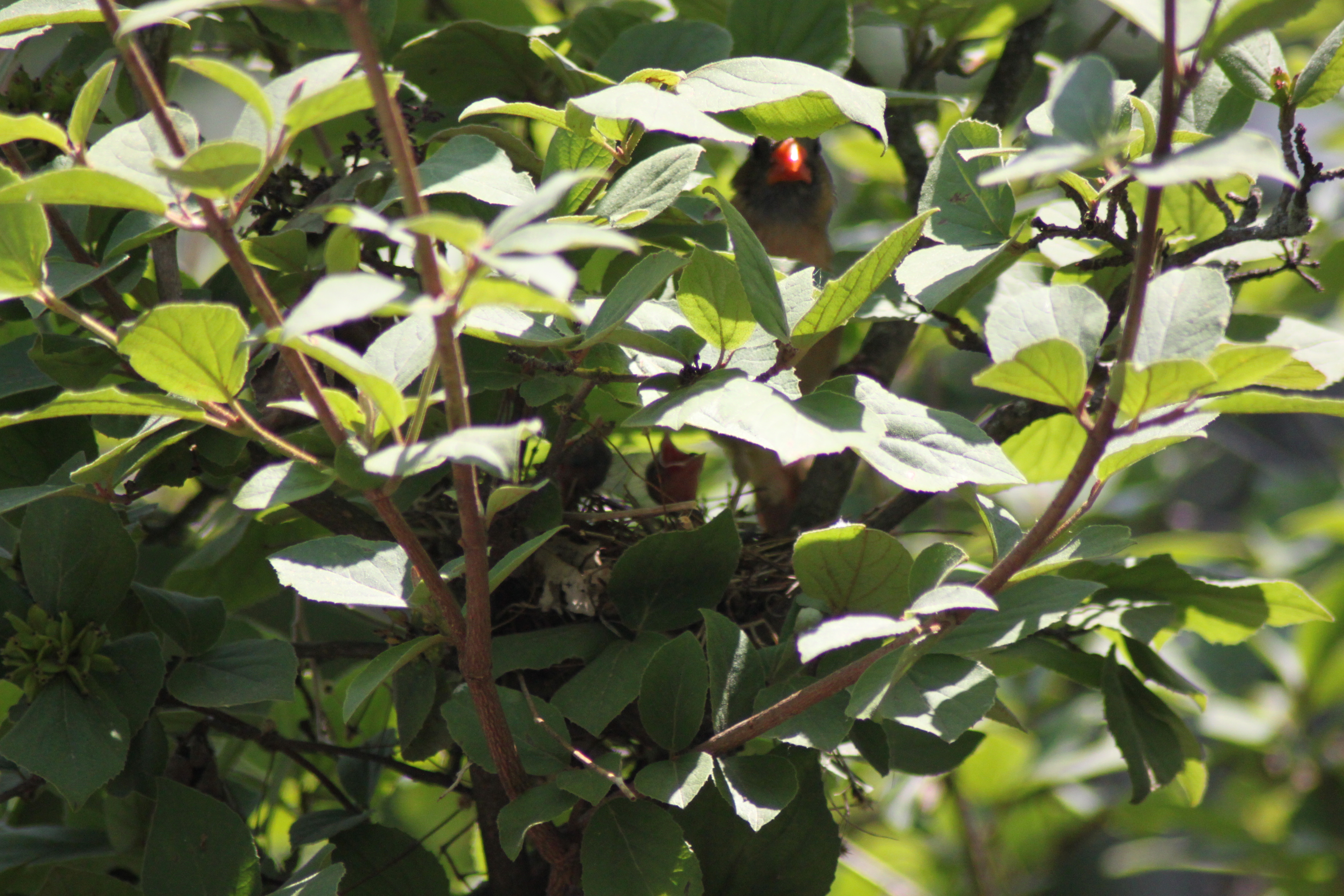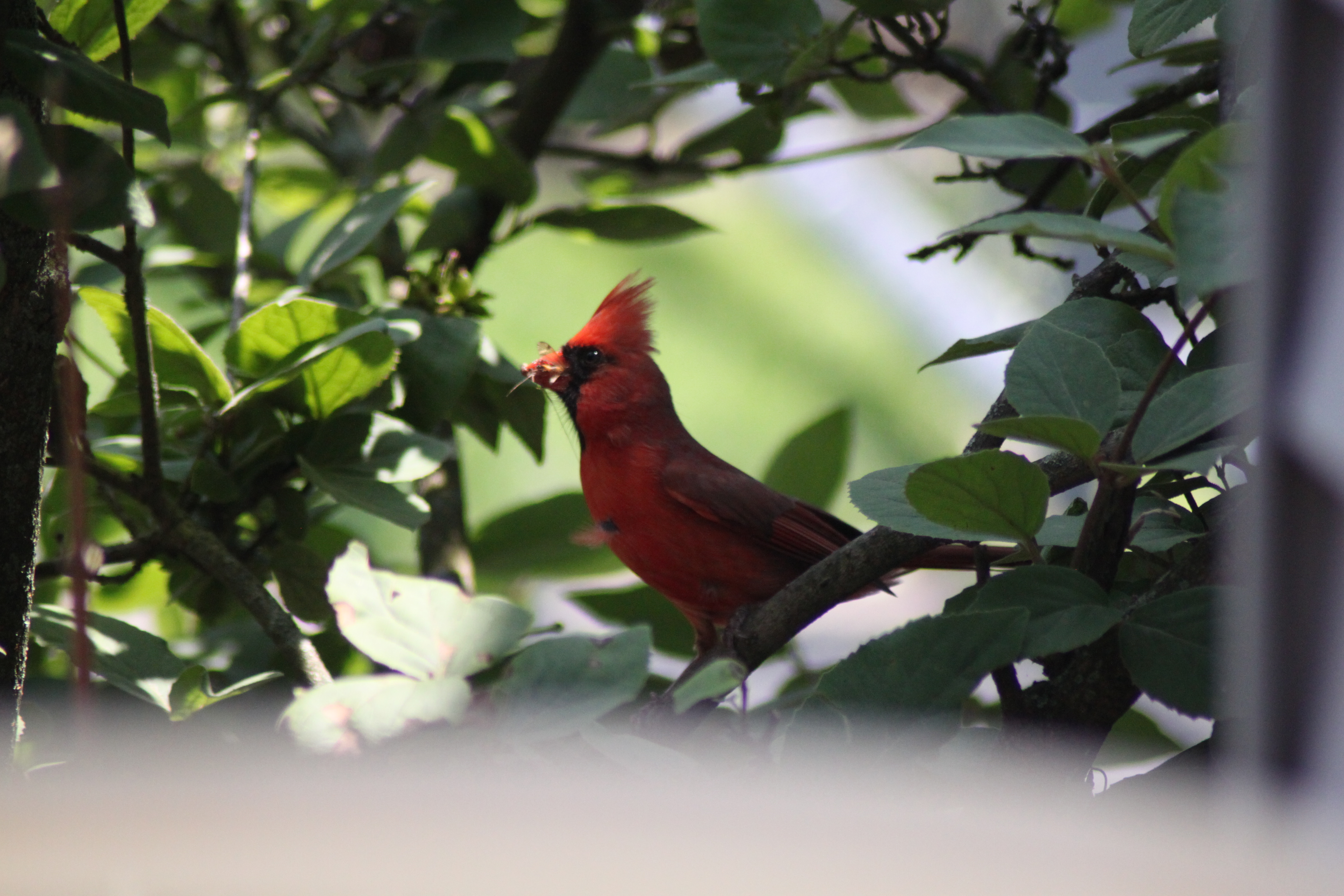 Whenever I am out there, Mom Cardinal is very upset. She raises holy heck. It takes some time and, I'm sure, the bugs she has for her chicks get very old before she summons the courage to return.