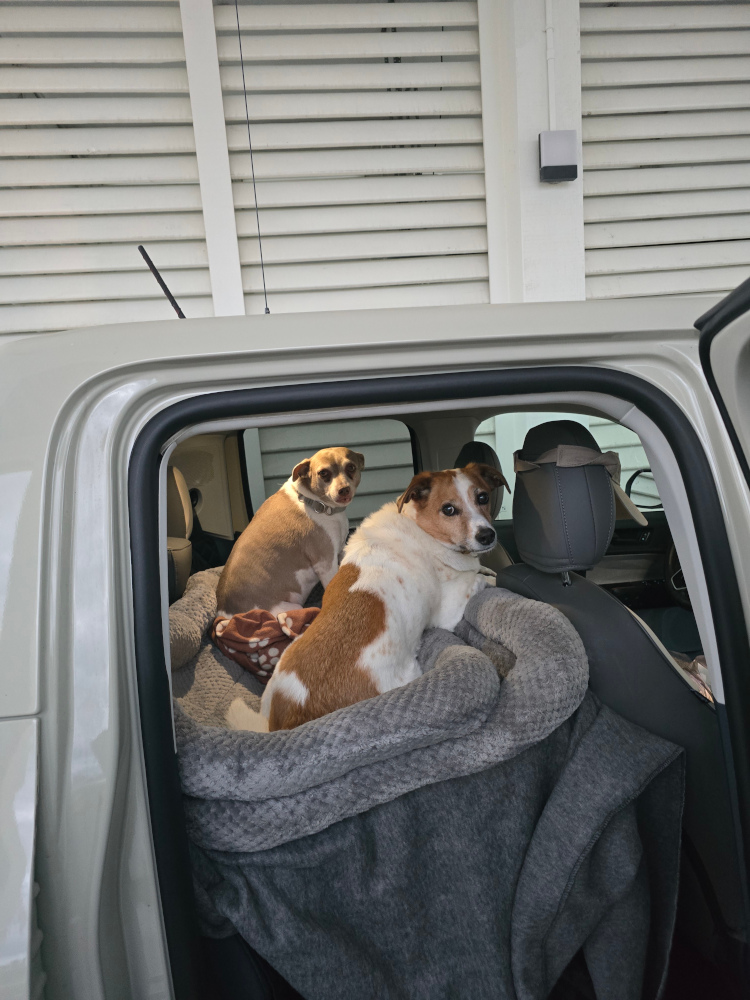 And, of course, the dogs need their dog condo. They get in through the front seats.