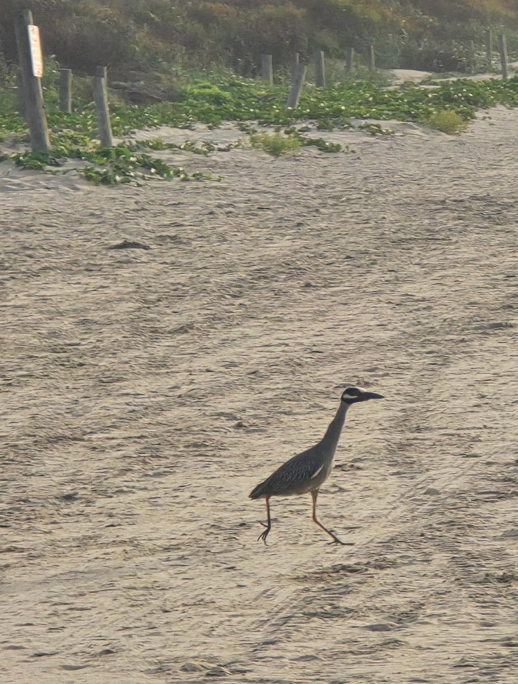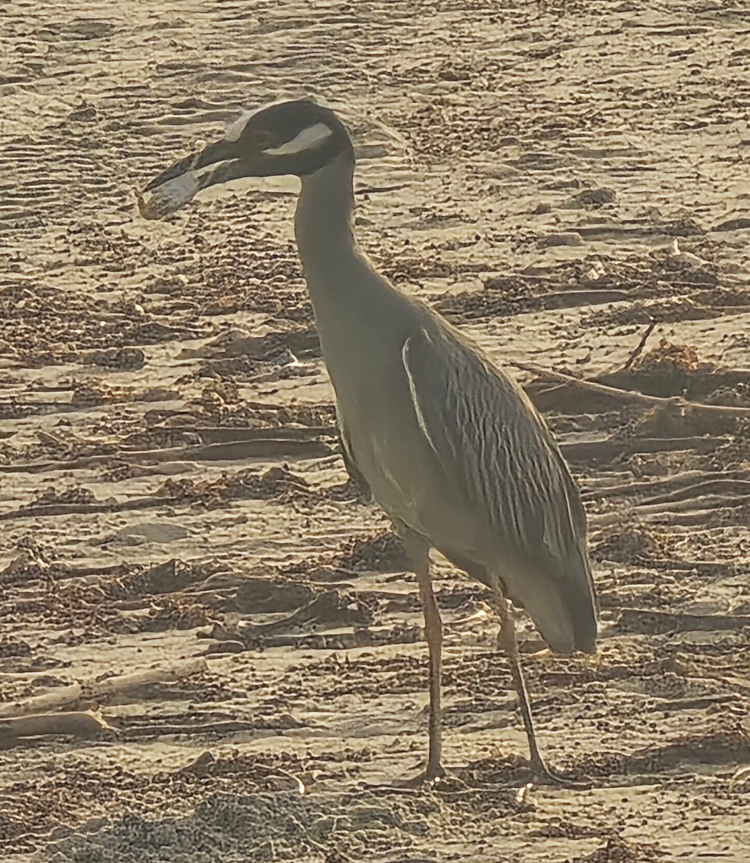 First time I've seen a heron hunting crabs on the beach.